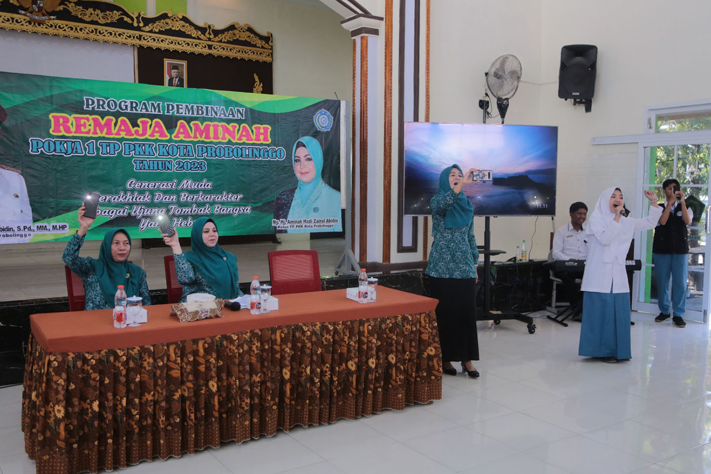 Usia upacara, sejumlah siswa-siswi yang telah ditunjuk, mengikuti program pembinaan Remaja Aminah di aula. Hadir sebagai narasumber, Ketua TP PKK Kota Probolinggo Aminah Hadi dan dr Chusnur Rofiq dari Puskesmas Sukabumi.
