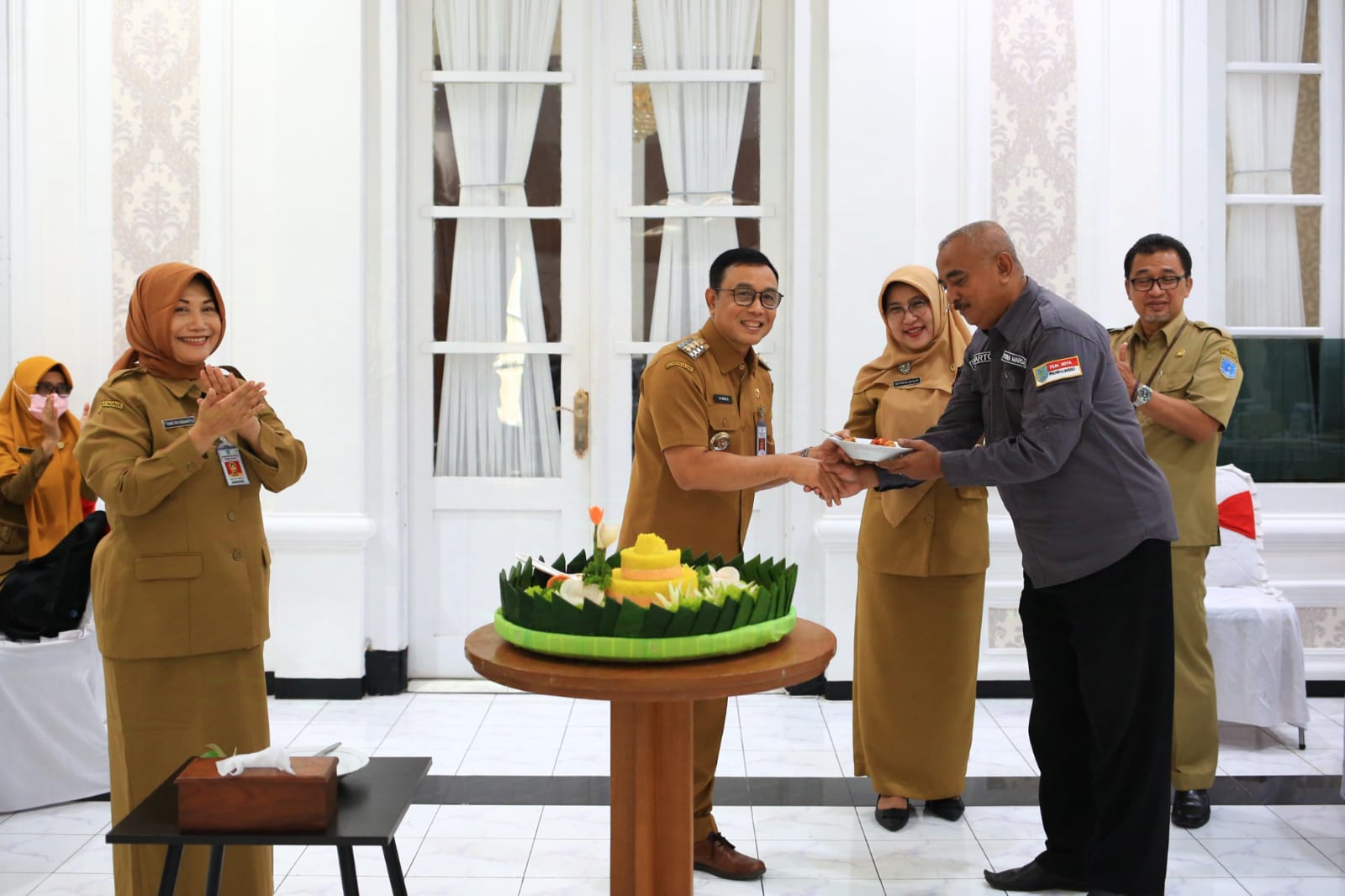KANIGARAN – Usai menerima penghargaan atas lomba yang digelar oleh Dirjen Bina Marga Kementerian PUPR RI baru-baru ini, sebagai Pemenang 1 Nasional Lomba Kinerja Bidang Kebinamargaan dalam Penyelenggaraan Jalan Kategori Kota, Penjabat Wali Kota M. Taufik Kurniawan, Selasa (24/12) siang menggelar tasyakuran.