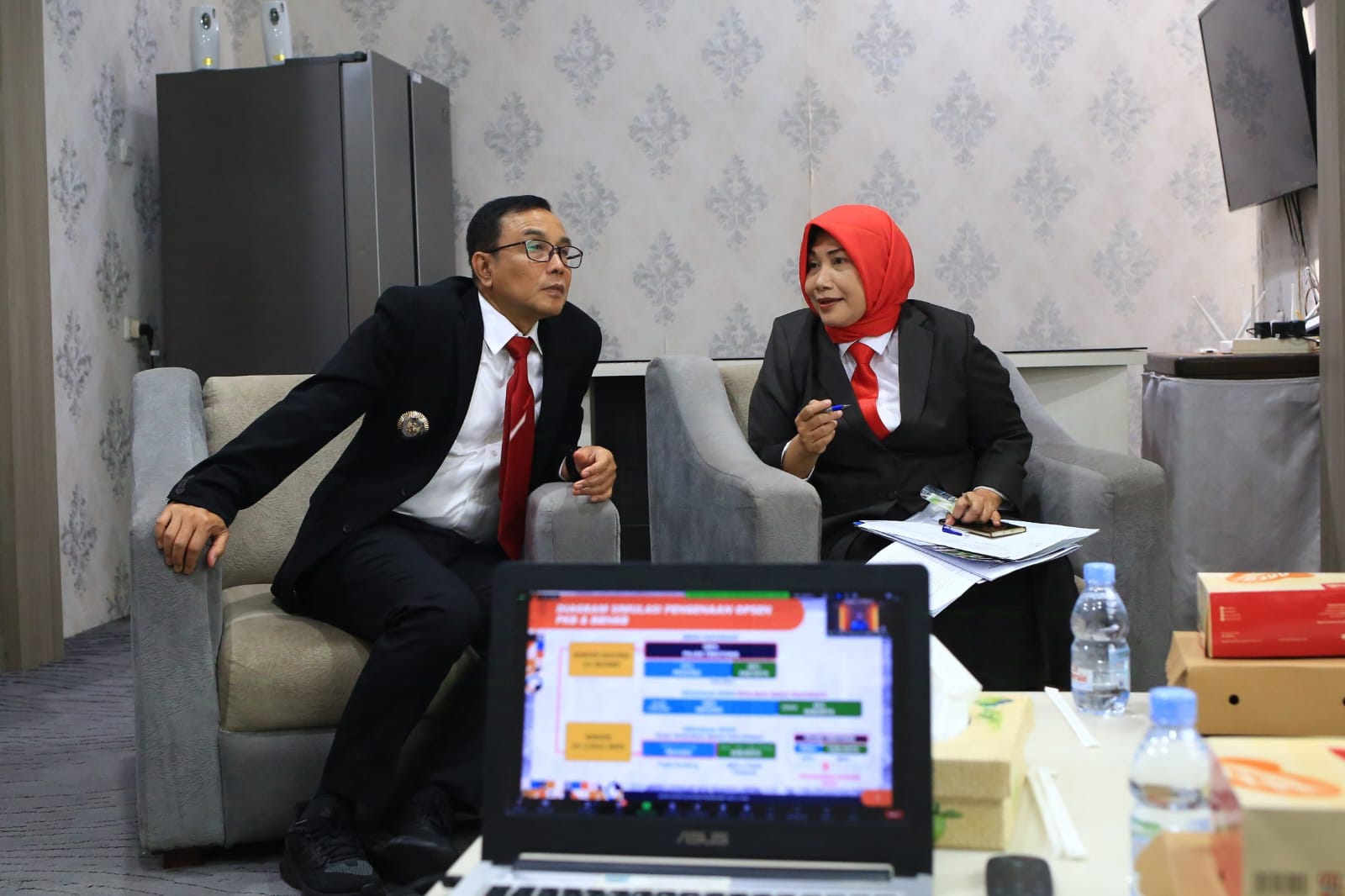 KANIGARAN - Penjabat Wali Kota Probolinggo M. Taufik Kurniawan didampingi Sekda drg. Ninik Ira Wibawati mengikuti rapat koordinasi daring bersama Menteri Dalam Negeri Tito Karnavian, Kamis (19/12) pagi di Kantor Wali Kota Probolinggo.