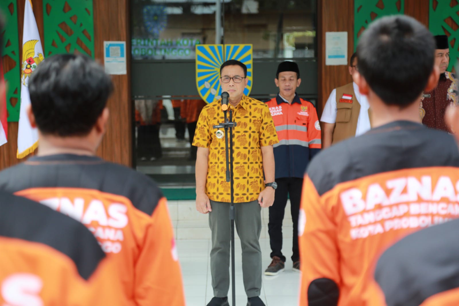 KANIGARAN - Sebanyak 30 anggota Baznas Tanggap Bencana (BTB) Kota Probolinggo diberangkatkan oleh Penjabat Wali Kota, M. Taufik Kurniawan pada Jumat (13/12) pagi di halaman Pemkot setempat. Para peserta terdiri dari mahasiswa penerima beasiswa Baznas dan relawan binaan. Mereka akan mengikuti diklat selama tiga hari di wilayah Tiris, Kabupaten Probolinggo.