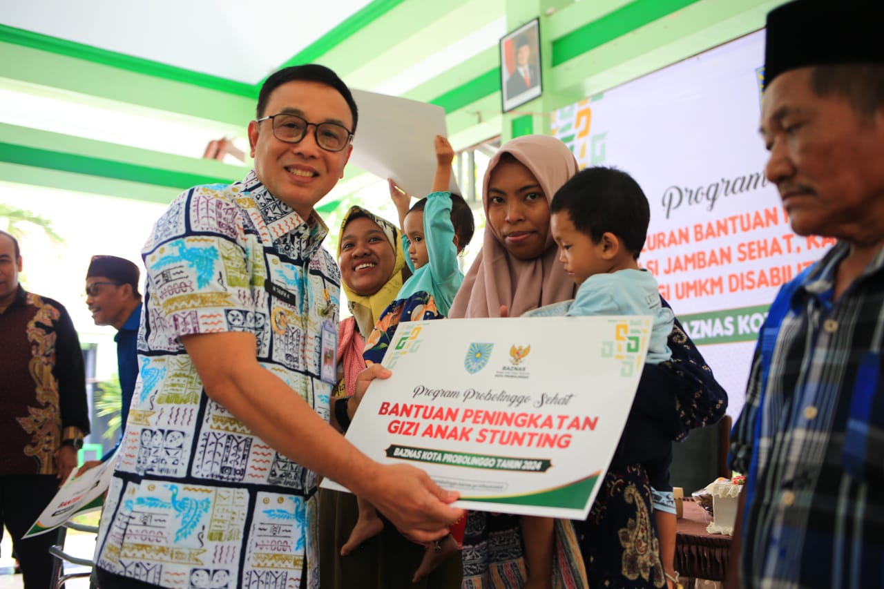 Bersama BAZNAS, Pj Wali Kota Taufik Serahkan Bantuan Untuk Anak Stunting se Kota Probolinggo