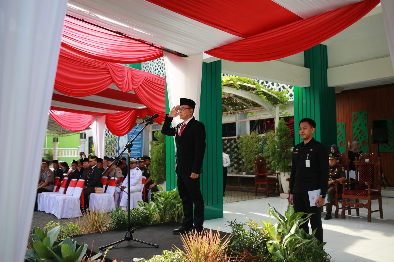 Upacara Peringatan Hari Bela Negara ke-76 Tahun 2024 digelar Pemerintah Kota Probolinggo, Kamis (19/12) pagi di halaman Kantor Wali Kota Probolinggo. Bertindak sebagai inspektur upacara, Penjabat Wali Kota M. Taufik Kurniawan serta diikuti oleh forkopimda, pejabat pemkot, unsur TNI, Polri, ASN, anggota pramuka dan anggota paskibraka Kota Probolinggo.