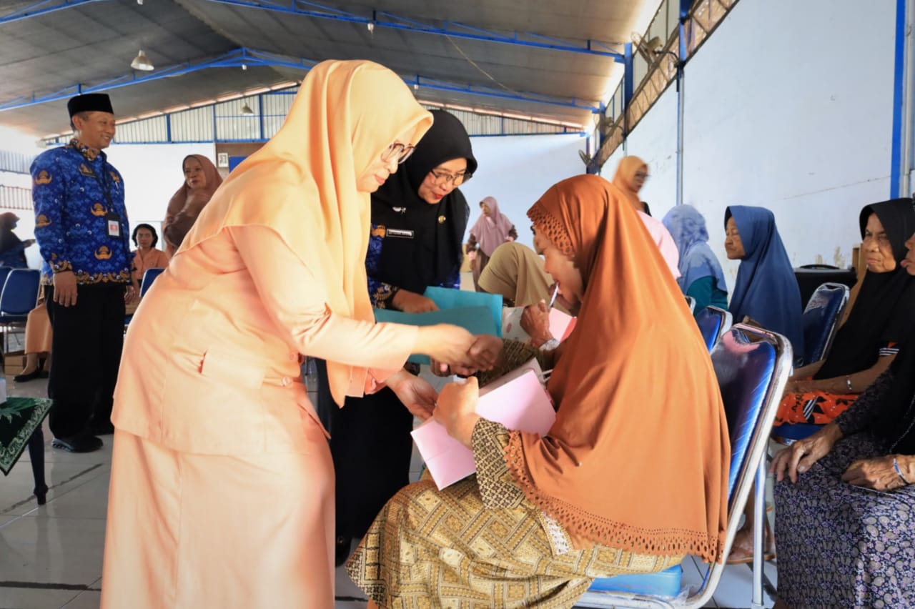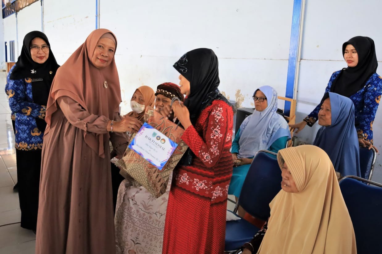 Setelah penyerahan bantuan secara simbolis, Pj Sekda bersama pengurus KOPRI dan DWP memantau langsung pemeriksaan kesehatan. Sekaligus melihat kondisi kamar dan fasilitas di panti yang terletak di Jalan Soekarno Hatta ini. (fa/pin)
