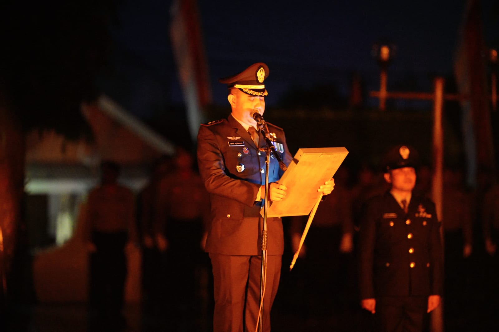 “Menyatakan hormat yang sebesar-besarnya atas keikhlasan dan kesucian pengorbanan saudara-saudara sebagai pahlawan dalam pengabdian terhadap perjuangan demi kebahagiaan negara dan bangsa,” terang Dandim.