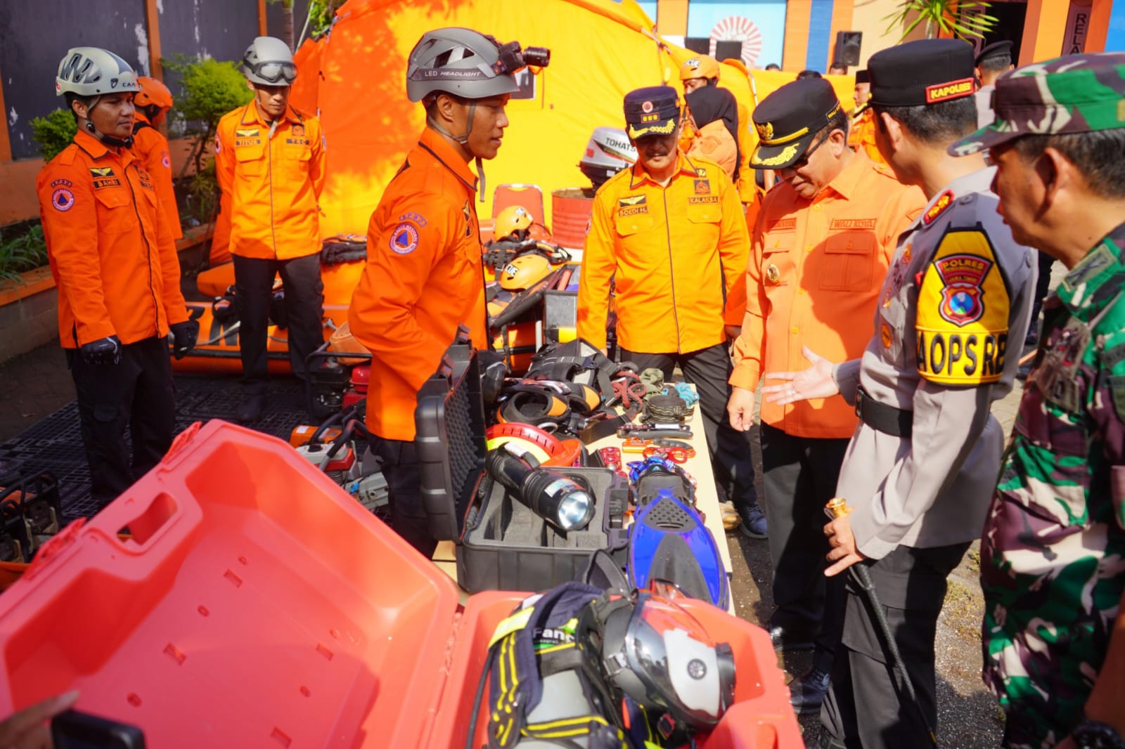 Usai apel, Wali Kota bersama forkopimda melakukan peninjauan. Berbagai peralatan diperiksa, mulai dari mesin chainsaw, perahu dan mesin tempel, peralatan vertikal rescue, hingga SCBA (Self Contained Breathing Apparatus). Tak ketinggalan, logistik seperti makanan siap saji, lauk pauk tambahan gizi, perlengkapan makan, paket sandang dan family kit juga dipastikan siap digunakan kapan pun.