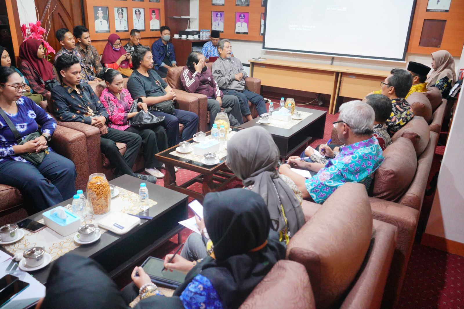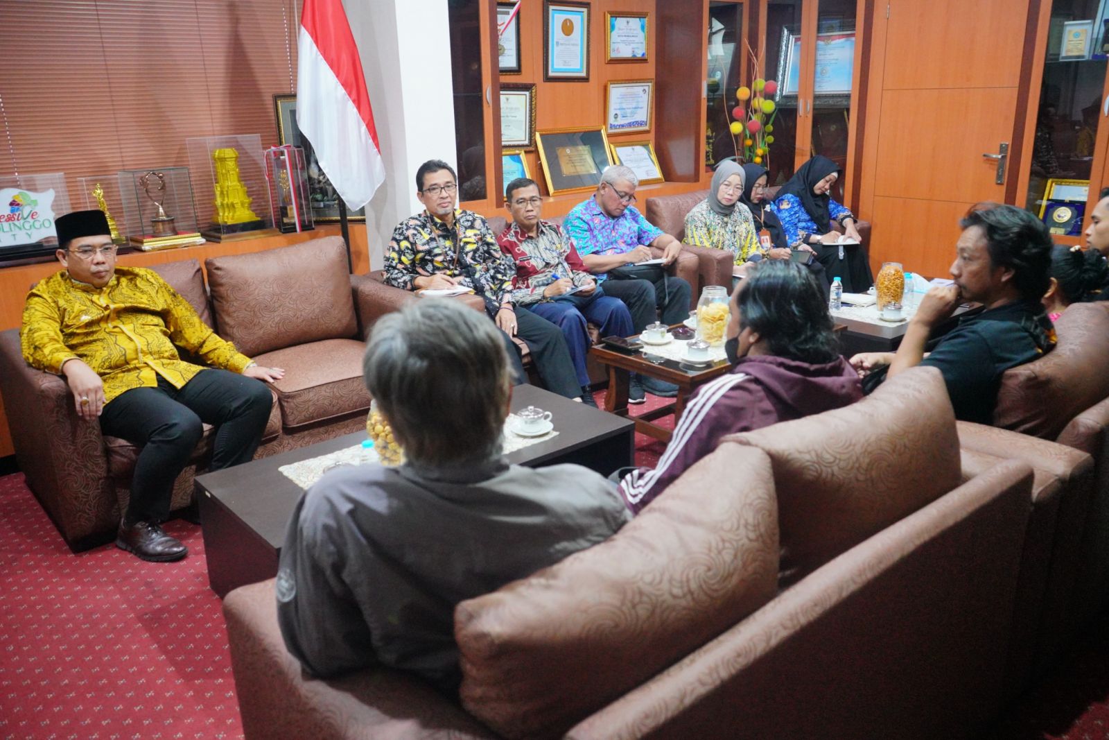 PROBOLINGGO – Wali Kota Probolinggo, dr. Aminuddin menerima audiensi Dewan Kesenian Kota Probolinggo (DKKPro) di ruang transit, Kantor Wali Kota, Jumat (29/8). Pertemuan ini membahas rencana alih fungsi Gedung Kesenian yang berada di kawasan Museum Probolinggo, Jalan Suroyo.
