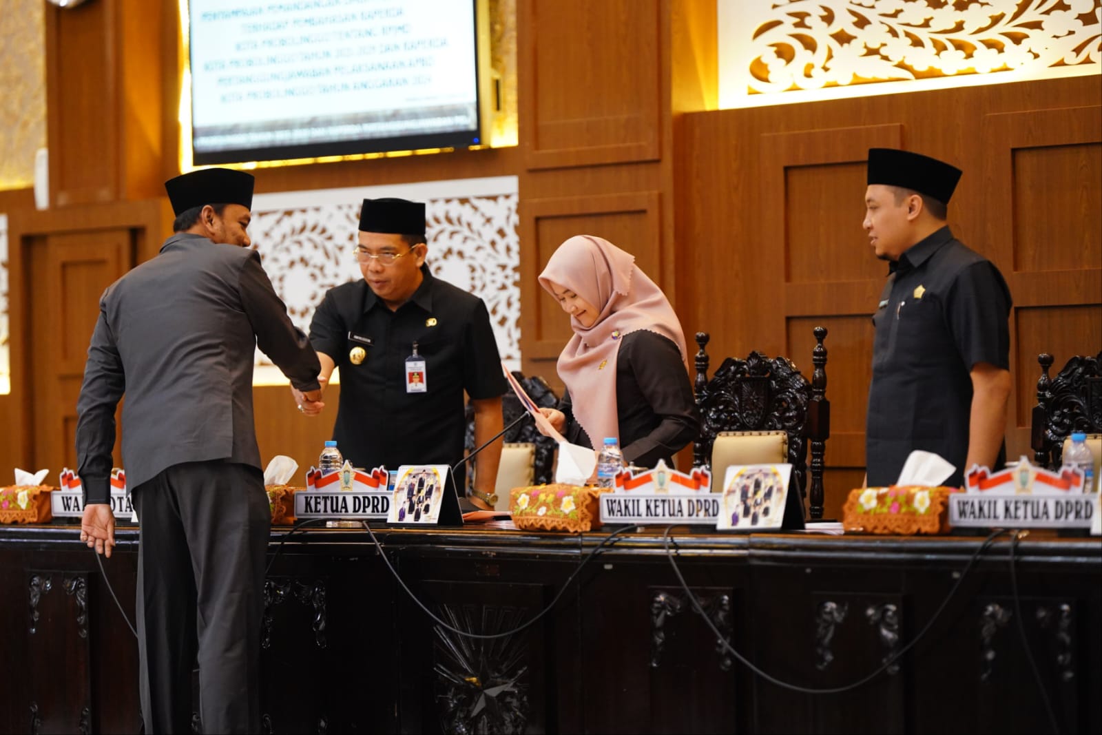 KANIGARAN–DPRD Kota Probolinggo menggelar Rapat Paripurna dengan agenda Penyampaian Pemandangan Umum (PU) Fraksi-Fraksi terhadap dua rancangan peraturan daerah penting, yakni Rencana Pembangunan Jangka Menengah Daerah (RPJMD) Kota Probolinggo Tahun 2025–2029 dan Pertanggungjawaban Pelaksanaan APBD Tahun Anggaran 2024. Rapat Paripurna yang berlangsung di ruang sidang utama DPRD, Sabtu (21/6) sore, dihadiri oleh Wali Kota Probolinggo dr. Aminuddin, para pimpinan dan anggota DPRD, serta jajaran lerangkat daerah di lingkungan Pemerintah Kota Probolinggo.
