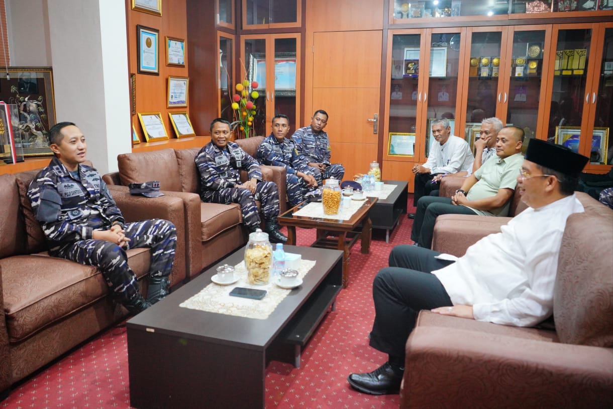 KANIGARAN – Wali Kota Probolinggo dr. Aminuddin terima kunjungan Komandan Pangkalan TNI AL (Lanal) Banyuwangi Letkol Laut (P) Muhamad Puji Santoso di Ruang Transit kantor Wali Kota Jalan Panglima Sudirman, Jumat (20/6) sore.
