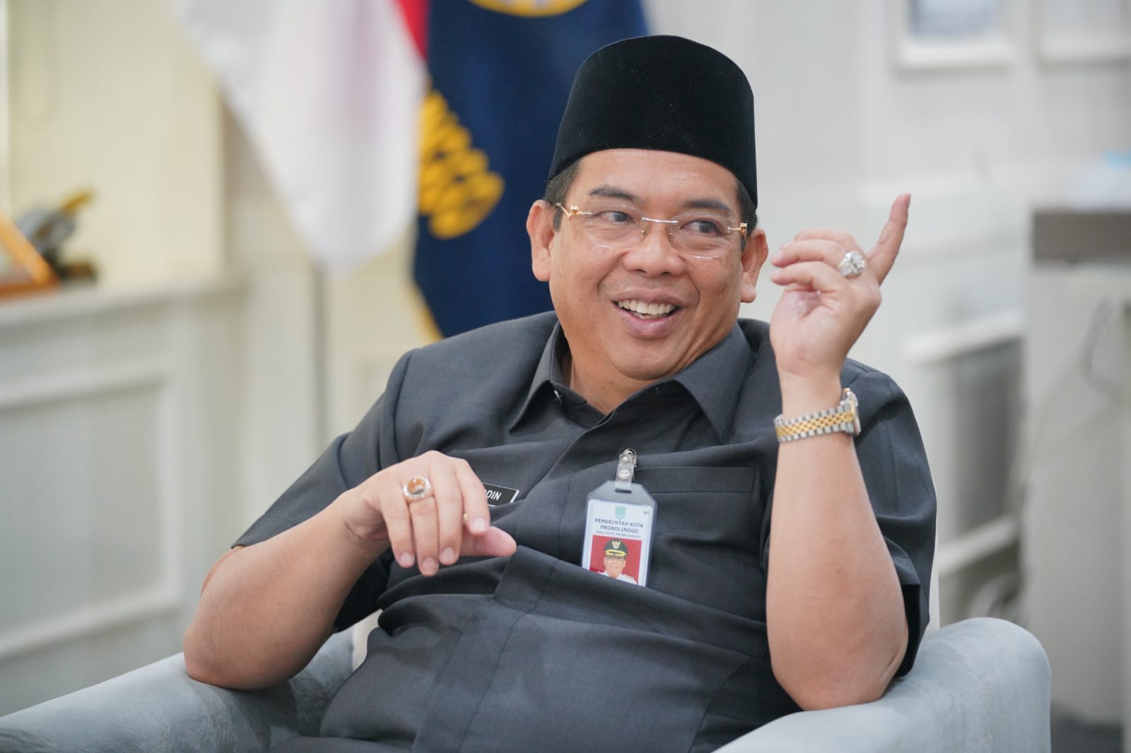 KANIGARAN - Wali Kota Probolinggo dr. Aminuddin menerima audiensi Ketua Pengadilan Agama Probolinggo Achmad Fausi di ruang kerjanya, Senin (7/7) siang. Kedatangan Ketua PA yang baru ini untuk bersilaturahmi, melanjutkan sinergi yang sudah terbangun di jajaran Forkopimda.