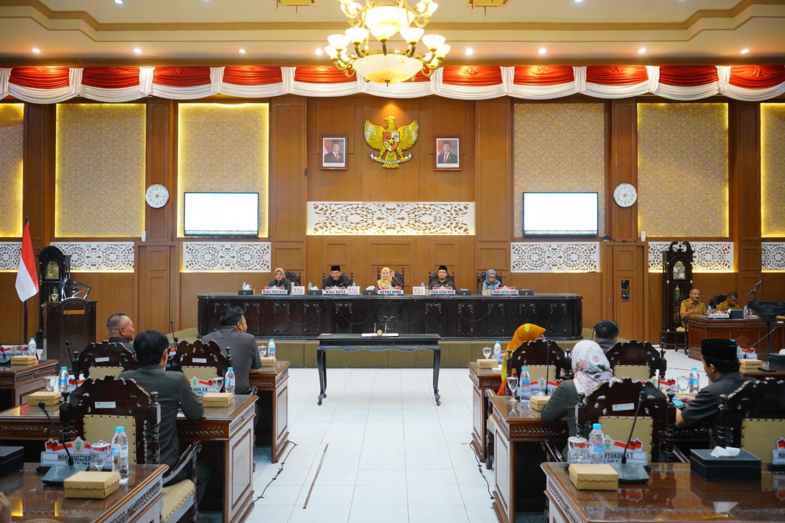 KANIGARAN - Dewan Perwakilan Rakyat Daerah (DPRD) Kota Probolinggo menggelar Rapat Paripurna dengan agenda Penetapan Perubahan Program Pembentukan Peraturan Daerah (Propemperda) Kota Probolinggo Tahun 2025, di Ruang Sidang Utama, Senin (27/10) siang.