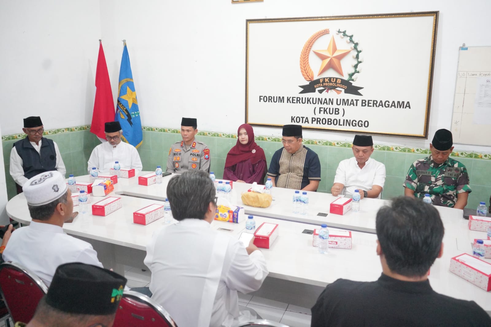 MAYANGAN - Forum Kerukunan Umat Beragama (FKUB) Kota Probolinggo. Forkopimda dan tokoh agama menggelar Doa Bersama Lintas Agama, Minggu (31/8) sore, di kantor FKUB setempat. Kegiatan ini dilakukan sebagai upaya saling menguatkan, menjaga Kota Probolinggo tetap kondusif dan aman.