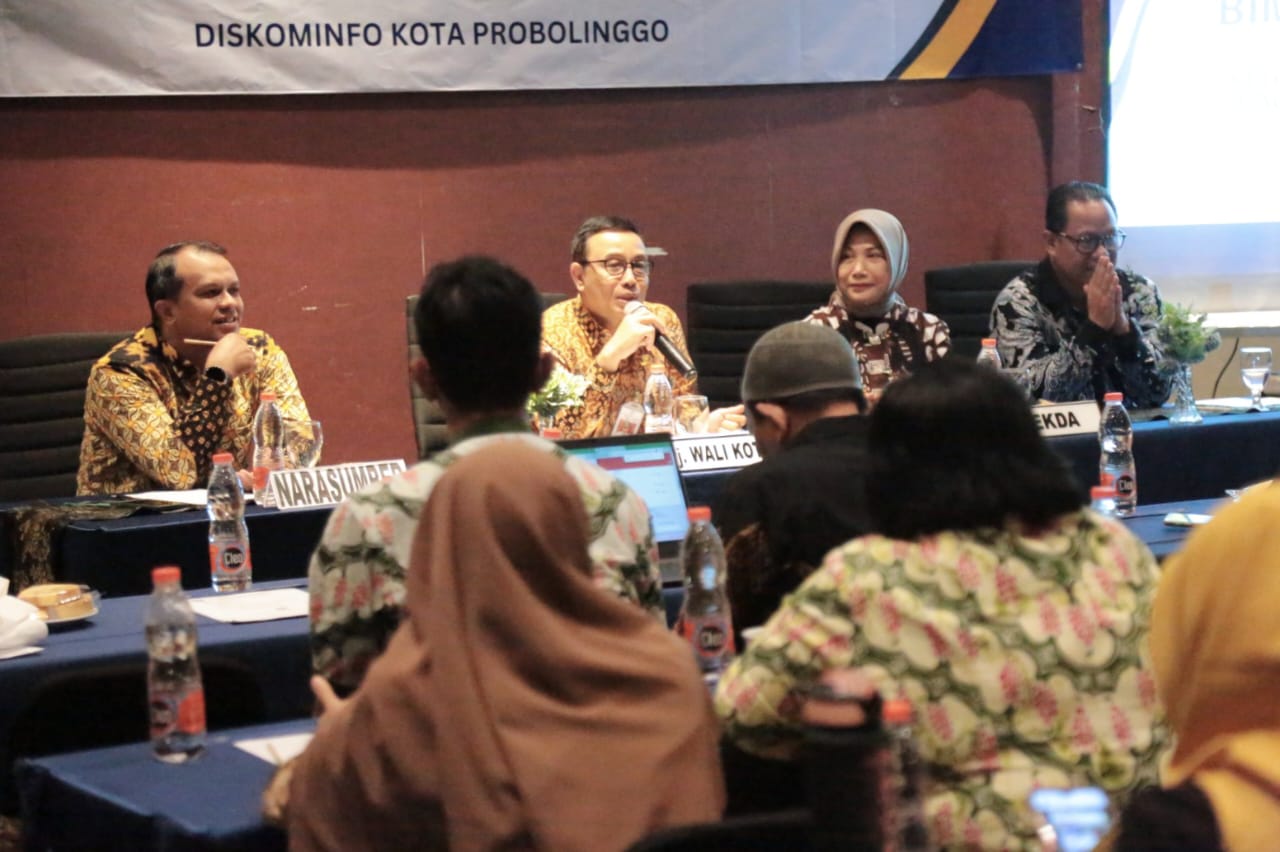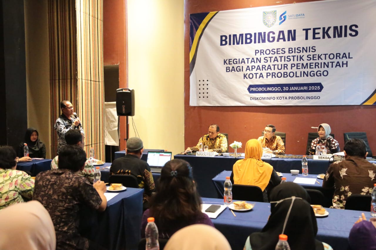 KANIGARAN - Kamis (30/1) pagi, bertempat di Ruang Semeru Hotel Bromo Park, digelar Bimbingan Teknis terkait proses bisnis kegiatan statistik. Acara ini dihadiri Penjabat Wali Kota Taufik Kurniawan didampingi Sekda drg. Ninik Ira Wibawati, Kepala Dinas Komunikasi dan Informatika Aman Suryaman dan narasumber Statistisi Muda Badan Pusat Statistik (BPS) Kota Probolinggo Endro Cahyono.