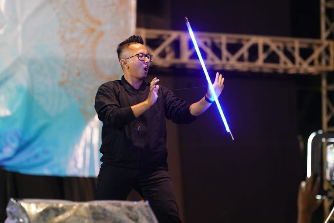Tak ketinggalan, pertunjukan sulap dari Firmansyah Raditya. Ia mempersembahkan ilusi permainan memotong dan menyambung tali, hingga membuat tongkat melayang di udara.