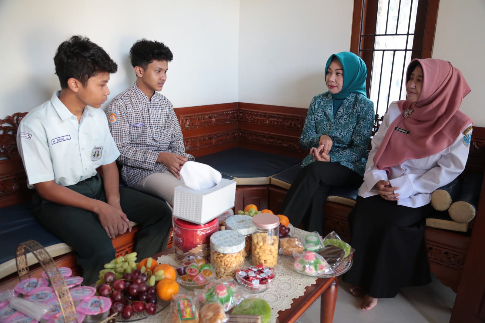 Kanigaran – Ketua TP PKK Kota Probolinggo, dr Evariani menjumpai dua pembalap bersaudara asal Kota Probolinggo, Rabu pagi (9/4). Ia berbincang dengan Hafizd Fahril Rasyadan (17) yang akrab dipanggil Rasya dan Muhammad Nabil Zahsena (14) alias Nabil di rumahnya Jalan Cokroaminoto, Kebonsari Kulon.