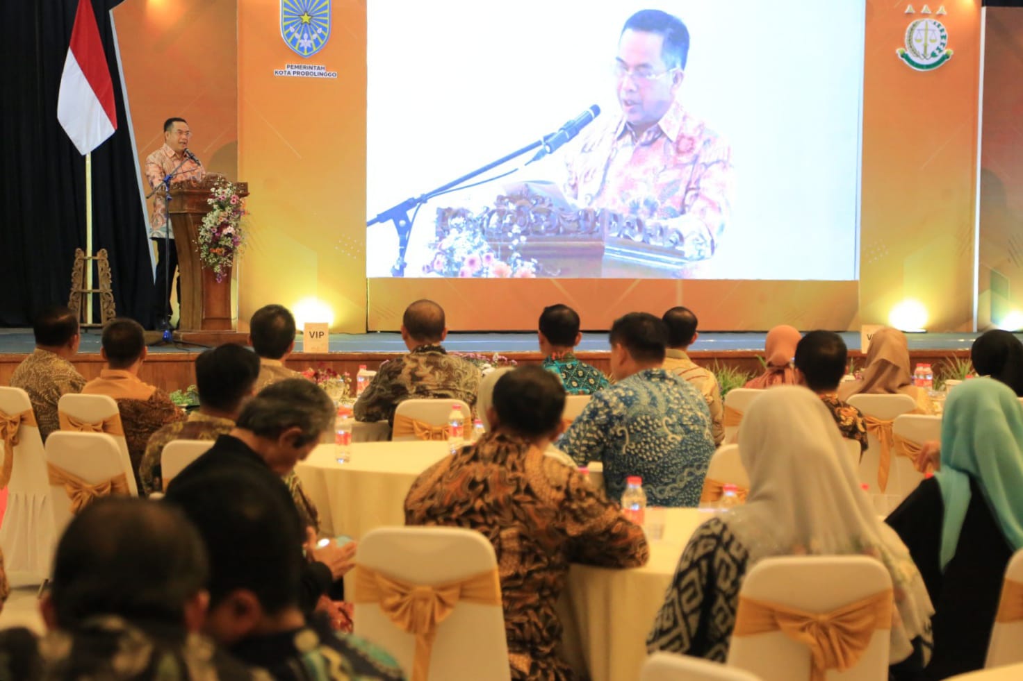 Wali Kota Probolinggo dr. Aminuddin, hadir langsung dalam acara tersebut, didampingi sang istri yang juga sekaligus Ketua TP PKK setempat dr. Evariani. Tampak pula, Wakil Wali Kota Ina Dwi Lestari, Pj Sekda Rey Suwigtyo, jajaran Forkopimda, serta tamu undangan lainnya, termasuk drg. Ninik Ira Wibawati, yang pernah menjabat sebagai Sekretaris Daerah di lingkungan Pemkot.