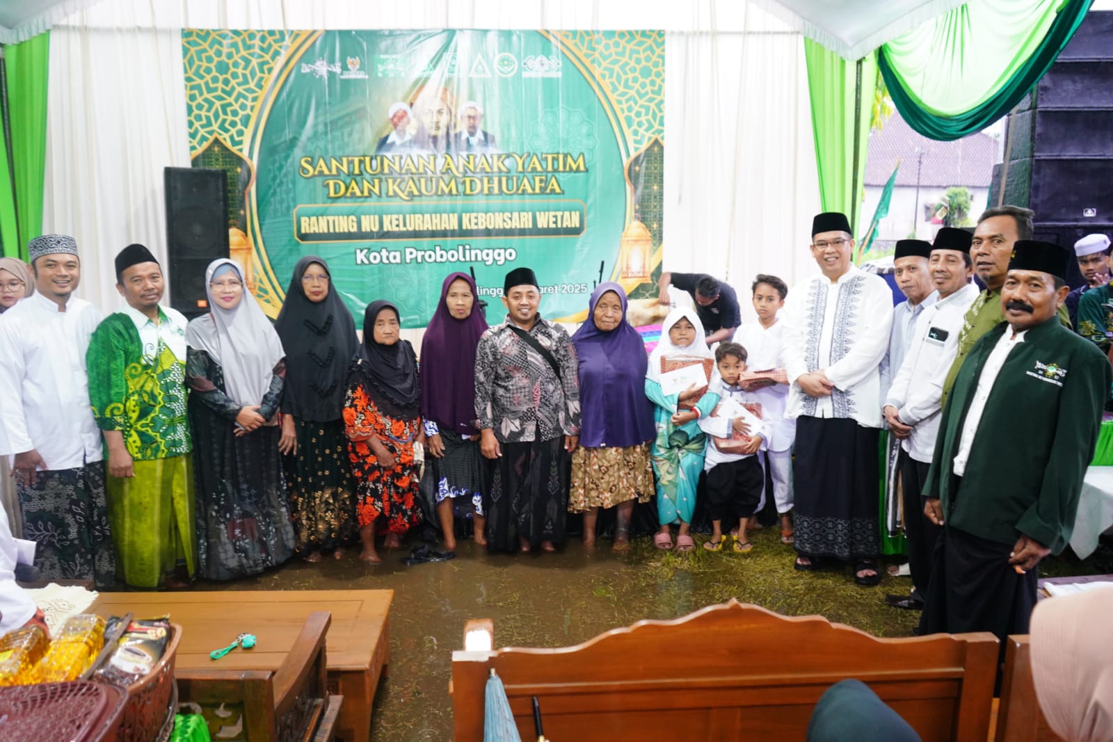 KANIGARAN - Wali Kota dr. Aminuddin secara resmi membuka acara pemberian santunan kepada anak yatim dan kaum duafa yang diselenggarakan oleh Ranting NU Kelurahan Kebonsari Wetan, Minggu (23/3) sore. Acara yang berlangsung di Jalan Sunan Muria Pelawangan Kereta Api ini bertujuan untuk meringankan beban hidup masyarakat yang kurang mampu, serta memberikan kebahagiaan kepada anak-anak yatim menjelang Hari Raya Idul Fitri.