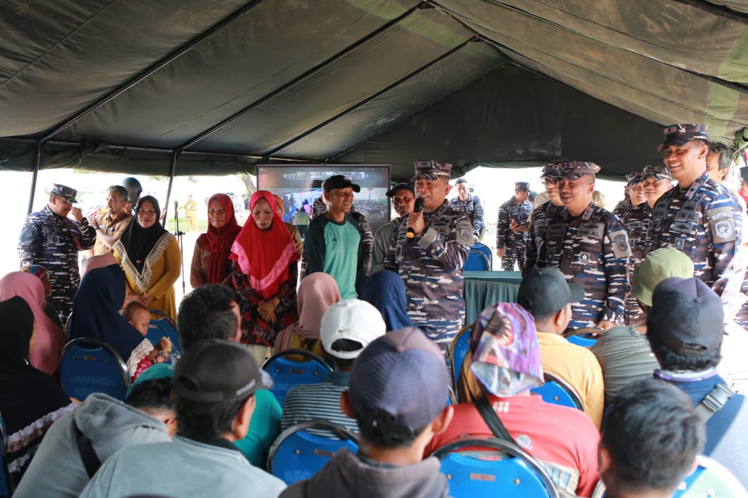 Bergeser ke klaster pertahanan, Aspotmar Kasal menyempatkan untuk memberi pesan kepada para nelayan yang sedang mengikuti sosialisasi bidang hukum kelautan yang disampaikan oleh anggota TNI AL. Selain itu, diserahkan pula bantuan berupa sembako dan alat keselamatan kepada perwakilan warga setempat.