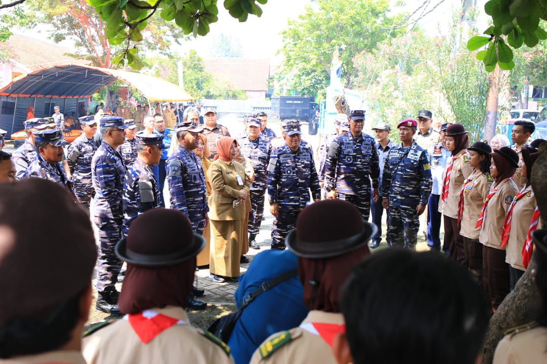 Lokasi pertama, klaster pendidikan, para petinggi TNI AL beserta rombongan meninjau kegiatan pelatihan bela negara yang diikuti anggota pramuka serta sosialisasi pendidikan aman bencana yang dilaksanakan BPBD Kota Probolinggo. Kegiatan ini dilanjutkan dengan penyerahan bantuan alat kebersihan kepada Kepala SD Negeri Mayangan 4.