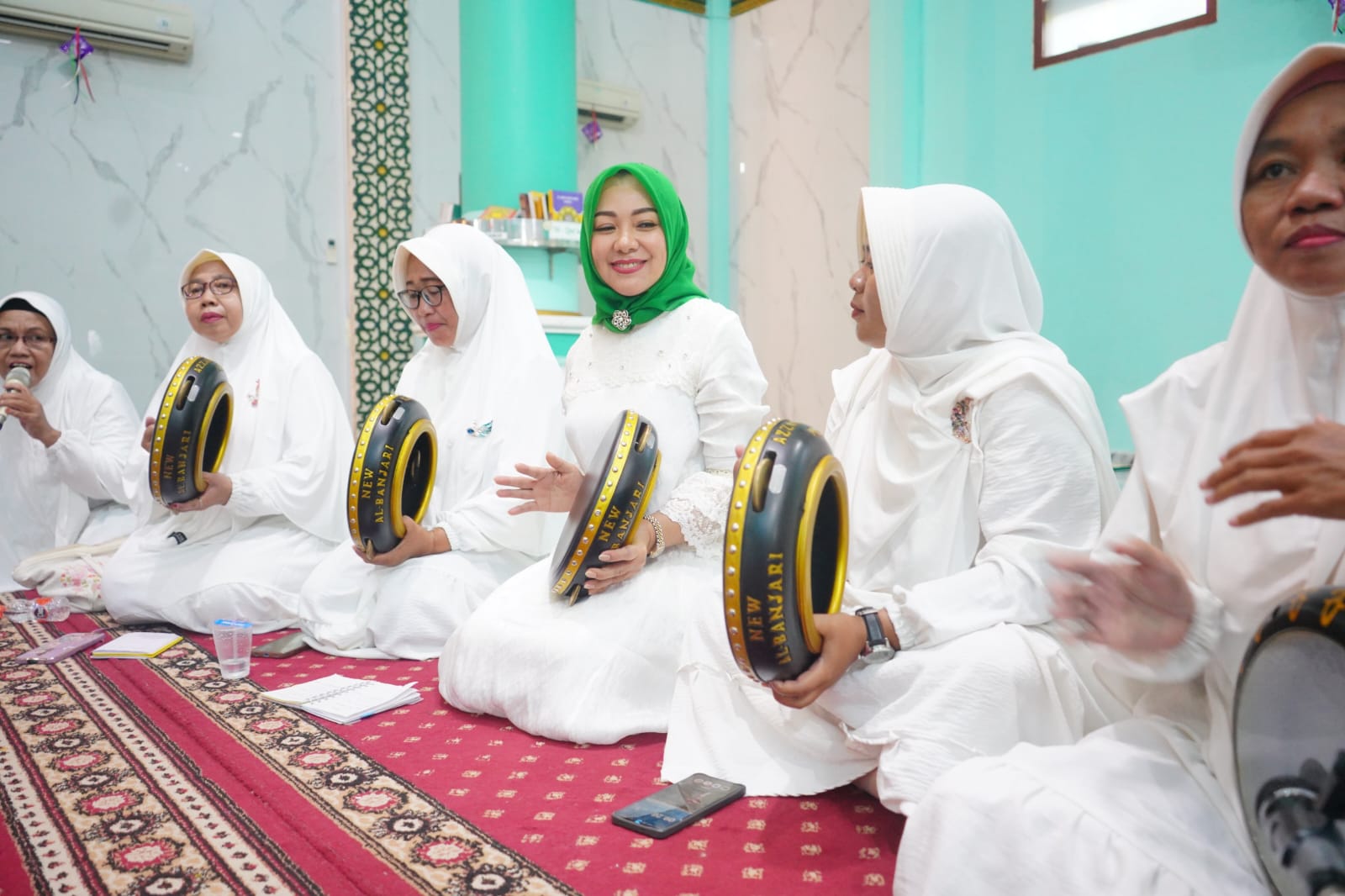 MAYANGAN – Ketua Tim Penggerak PKK Kota Probolinggo dr Evariani Aminuddin menghadiri pengajian rutin Majelis Taklim Muslimat Masjid Agung Raudlatul Jannah, memperingati Maulid Nabi Muhammad SAW 1447 Hijriah, Kamis (18/9). Pengajian juga diisi tausiyah KH Muhammad Syakur Dewa (Gus Dewa) Pengasuh Ponpes Darut Taufiq, Krejengan Probolinggo.