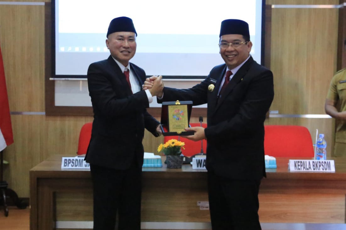 KANIGARAN - Wali Kota Probolinggo dr. Aminuddin secara resmi menerima kunjungan peserta Studi Lapangan Pelatihan Kepemimpinan Pengawas (PKP) Angkatan IX dan X Tahun 2025 di Aula Badan Pengelola Pendapatan, Keuangan, dan Aset Daerah (BPPKAD) Kota Probolinggo, Selasa (1/7). Sebanyak 78 peserta hadir dalam kegiatan ini yang berlangsung sejak 30 Juni hingga 2 Juli 2025.