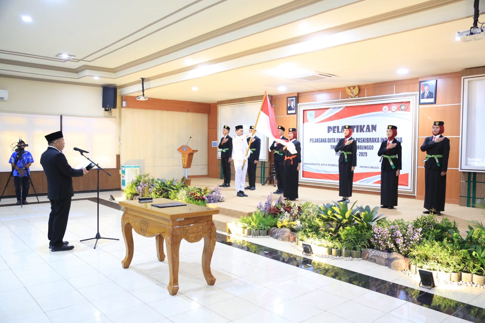 KANIGARAN – Wali Kota Probolinggo dr. Aminuddin melantik Pelaksana Duta Pancasila Paskibaraka Indonesia (DPPI) Tingkat Kota Probolinggo Periode 2025-2029. Kota Probolinggo menjadi pelopor di Provinsi Jatim sekaligus daerah keempat se-Indonesia yang melantik Pelaksana DPPI. 4 daerah itu yakni, Provinsi Daerah Istimewa Yogyakarta, Kota Depok, Kab Halmahera Selatan dan Kota Probolinggo. Prosesi pelantikan dilaksanakan di Puri Manggala Bakti Pemkot Probolinggo, Jumat (12/4).