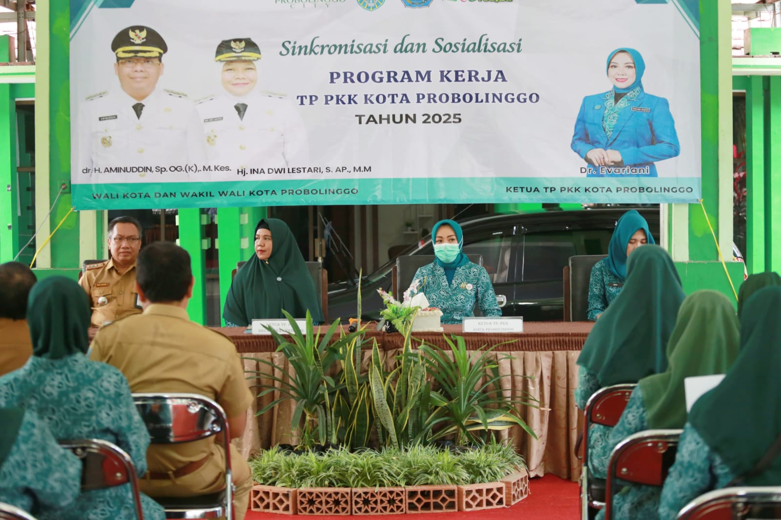KEDOPOK — Mengawali hari ini, Selasa (25/3), Ketua TP PKK Kota Probolinggo dr. Evariani Aminuddin kembali melakukan kunjungan, dalam rangka Sinkronisasi dan Sosialisasi Program PKK, di Pendopo Kecamatan Kedopok. Giat tersebut bertujuan untuk memastikan setiap program yang dijalankan, dapat berjalan sesuai dengan rencana dan target yang telah ditetapkan.