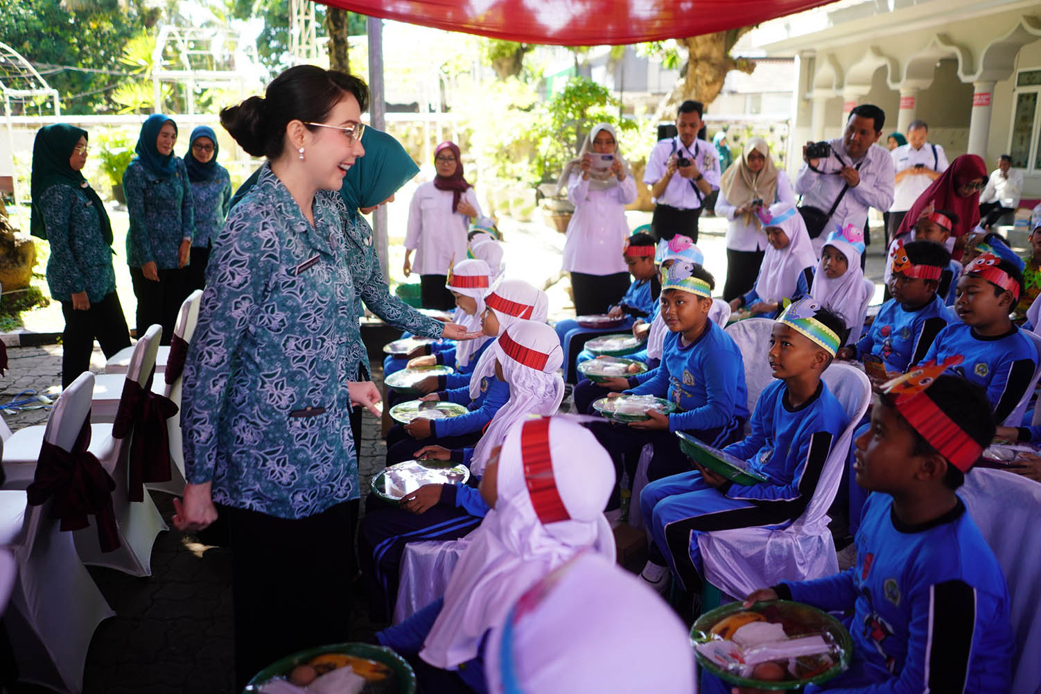 Tak hanya Arumi, dr. Evariani juga ikut menyapa dan memberi semangat kepada para siswa agar lebih gemar makan ikan. dr. Evariani menegaskan bahwa Kota Probolinggo memiliki potensi besar di bidang kelautan dan perikanan.
