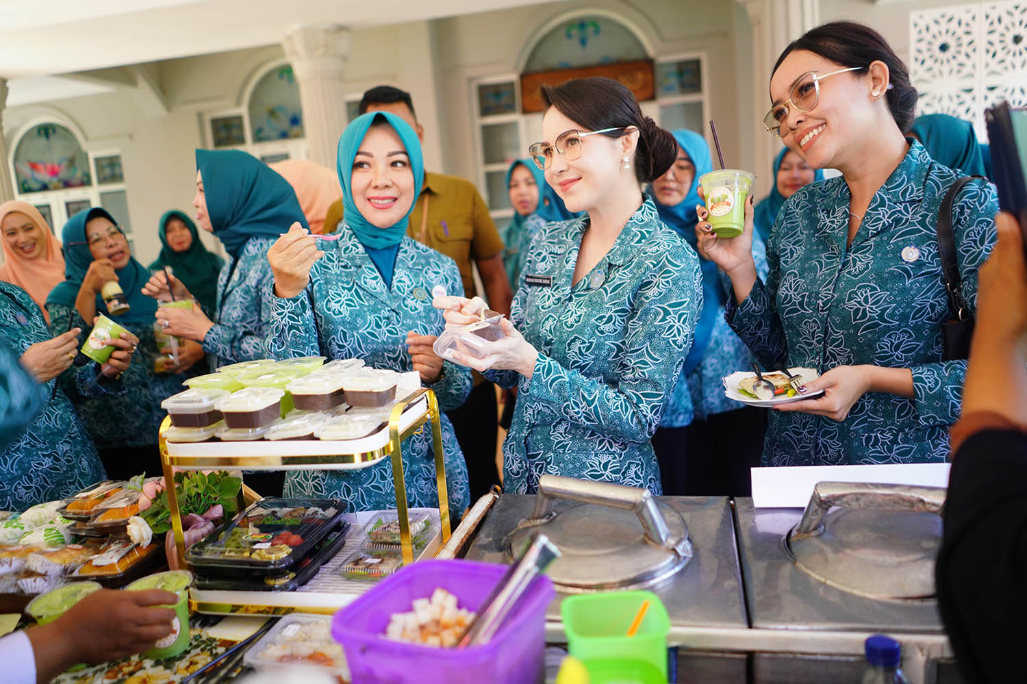 Kegiatan yang digelar di halaman Rumah Dinas Wali Kota Probolinggo, Rabu (27/8) pagi, ini berlangsung meriah. Hadir Ketua TP PKK Provinsi Jawa Timur, Arumi Bachsin, bersama jajaran pengurus, antara lain Ketua Bidang Ketahanan Pangan TP PKK Jatim, Diana Heru Suseno, dan Ketua Pokja III TP PKK Jatim, Enny Haliyanti Isa Ansori.
