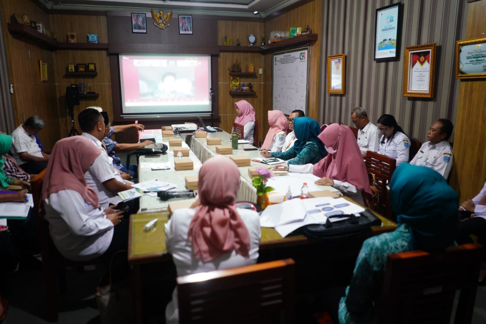 KANIGARAN – Pemkot Probolinggo masuk dalam nominasi Penilaian Sanitasi Total Berbasis Masyarakat (STBM) Tahun 2025 yang diselenggarakan oleh Kementerian Kesehatan. Penilaian STBM tersebut telah sampai di tahap Verifikasi Dokumen, Rabu (4/6). Kegiatan penilaian yang dilakukan secara virtual di Ruang Rapat Lantai 1, Kantor Bappeda Litbang tersebut dihadiri oleh Ketua Tim Penggerak PKK Kota Probolinggo dr. Evariani Aminuddin, Sekretaris Daerah Kota Probolinggo Ninik Ira Wibawati, Kepala Bappeda Litbang, Kepala Dinas Kesehatan, dan para inovator lingkungan Kota Probolinggo.
