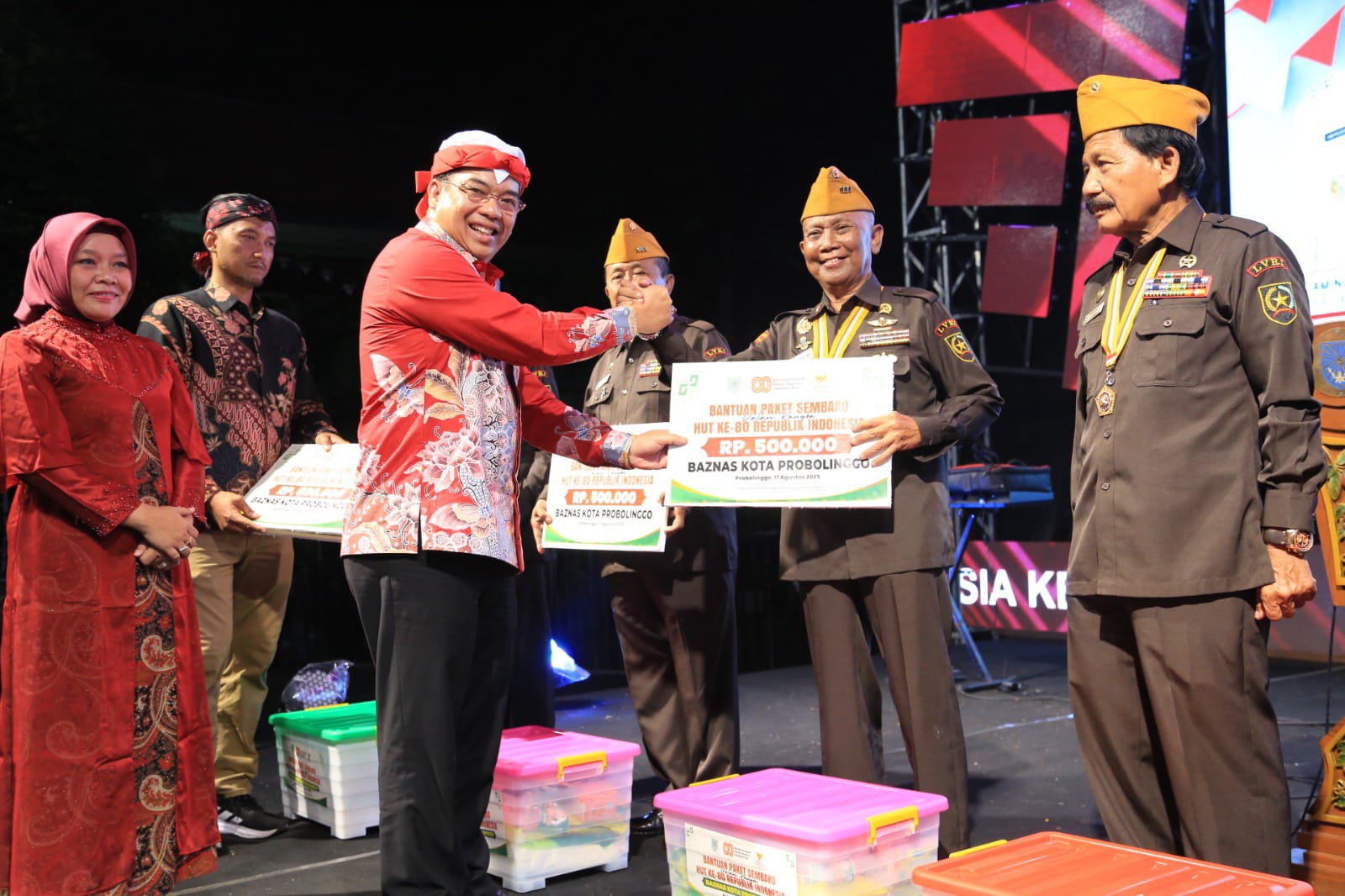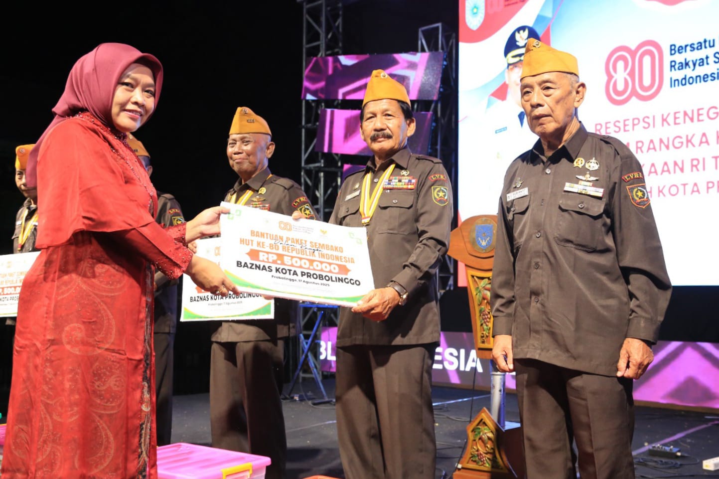 Beragam sajian ditampilkan, mulai dari marching band, line dance, tarian kreasi dari pemenang Gemuruh Nusantara yang sebelumnya digelar 15–17 Agustus, hingga yel-yel penuh semangat dari paskibraka 2025 yang menggema tanpa pengeras suara. Pada kesempatan tersebut, Wali Kota dan Wakil Wali Kota Probolinggo juga menyerahkan bantuan berupa bahan pokok kepada anggota LVRI.