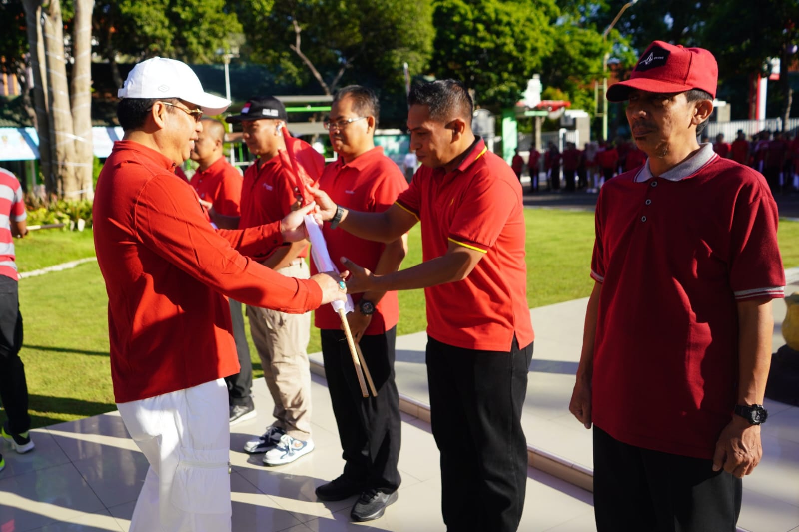 Bagi-bagi bendera merah putih dilakukan bersama dengan perwakilan Forkopimda, Sekda drg Ninik Ira Wibawati serta pejabat di lingkungan Pemerintah Kota Probolinggo. Dalam apel tersebut yang diikuti pegawai ASN dan Non ASN ini dibarengi pembukaan diklat calon pasukan pengibar bendera Kota Probolinggo.