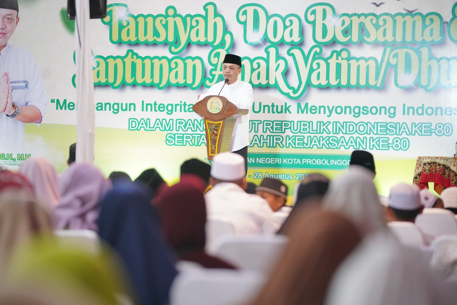 KANIGARAN – Suasana hangat mewarnai acara tausiyah, doa bersama, dan santunan anak yatim yang digelar Kejaksaan Negeri (Kejari) Kota Probolinggo dalam rangka memperingati HUT ke-80 Kemerdekaan RI dan Hari Lahir Adhyaksa ke-80, Kamis (28/8) malam. Mengusung tema “Membangun Integritas Jaksa untuk Menyongsong Indonesia Emas”, kegiatan ini tidak hanya menjadi momen spiritual, tetapi juga wujud kepedulian sosial insan Adhyaksa.
