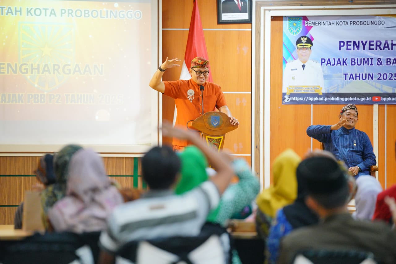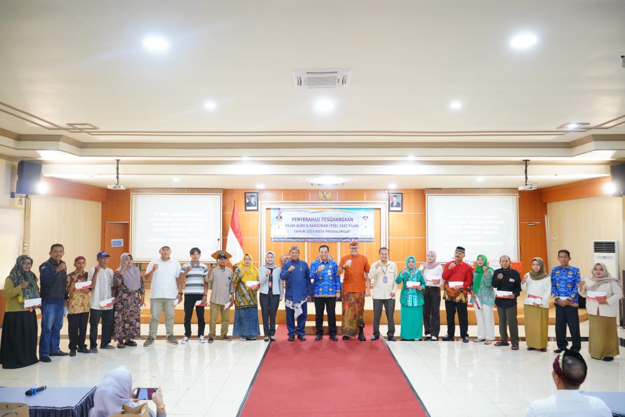 KANIGARAN – Pemerintah Kota Probolinggo melalui Badan Pengelolaan Keuangan dan Aset Daerah (BPPKAD) memberikan penghargaan kepada 26 penerima Penghargaan Pajak Bumi dan Bangunan (PBB) Taat Pajak Tahun 2025 dari unsur masyarakat, instansi, dan perusahaan. Penyerahan berlangsung pada Selasa (28/10) di Puri Manggala Bhakti, Kantor Wali Kota Probolinggo.