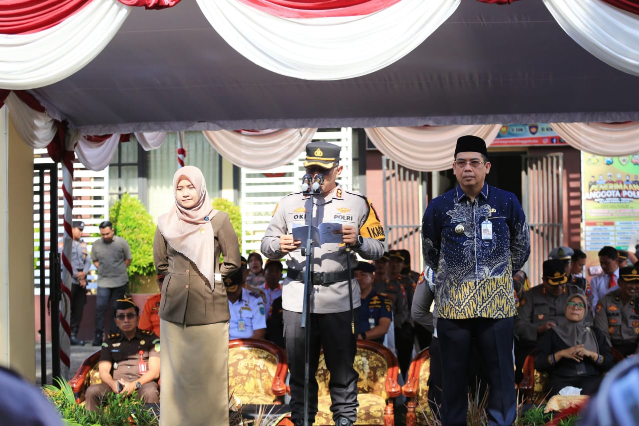 MAYANGAN - Wali Kota dr. Aminuddin bersama jajaran Forkopimda Kota Probolinggo menghadiri Apel Gelar Pasukan Operasi Kepolisian Terpusat Ketupat 2025. Apel yang digelar oleh Polres Probolinggo Kota ini berlangsung di halaman Mapolres Kota Probolinggo, Kamis (20/3) pagi, dalam rangka pengamanan Idul Fitri 1446 H Tahun 2025. Bertindak sebagai pemimpin apel adalah Kapolres Probolinggo Kota AKBP Oki Ahadian.
