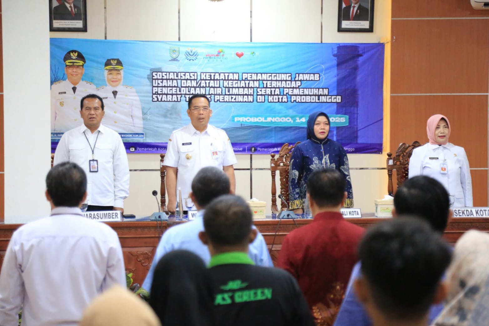 Kanigaran - Pemerintah Kota Probolinggo melalui Dinas Lingkungan Hidup (DLH) menggelar Sosialisasi Ketaatan Penanggung Jawab Usaha dan atau Kegiatan terhadap Pengelolaan Air Limbah serta Pemenuhan Syarat Teknis Perizinan, Rabu (14/5) pagi di Gedung Puri Manggala Bhakti.
