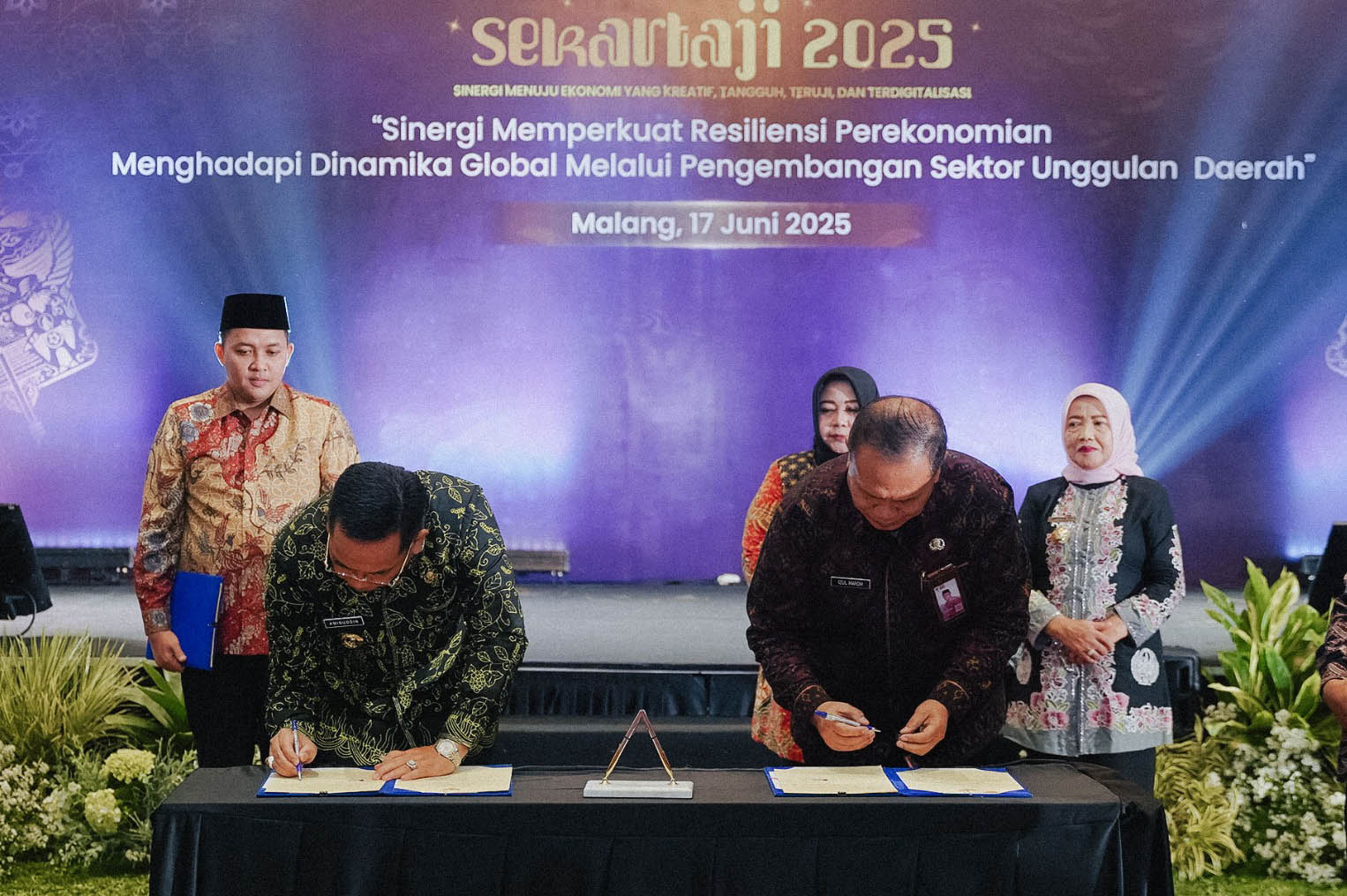 MALANG – Komitmen Pemerintah Kota Probolinggo dalam memperkuat ketahanan ekonomi daerah kembali ditunjukkan melalui langkah konkret. Bertempat di Hotel Grand Mercure Malang, Selasa (17/6), Pemkot Probolinggo menandatangani nota kesepahaman (MoU) bersama Kabupaten Pasuruan dan Kabupaten Blitar dalam rangkaian kegiatan Sekartaji 2025 (Sinergi Menuju Ekonomi yang Kreatif, Tangguh, Teruji, dan Terdigitalisasi).