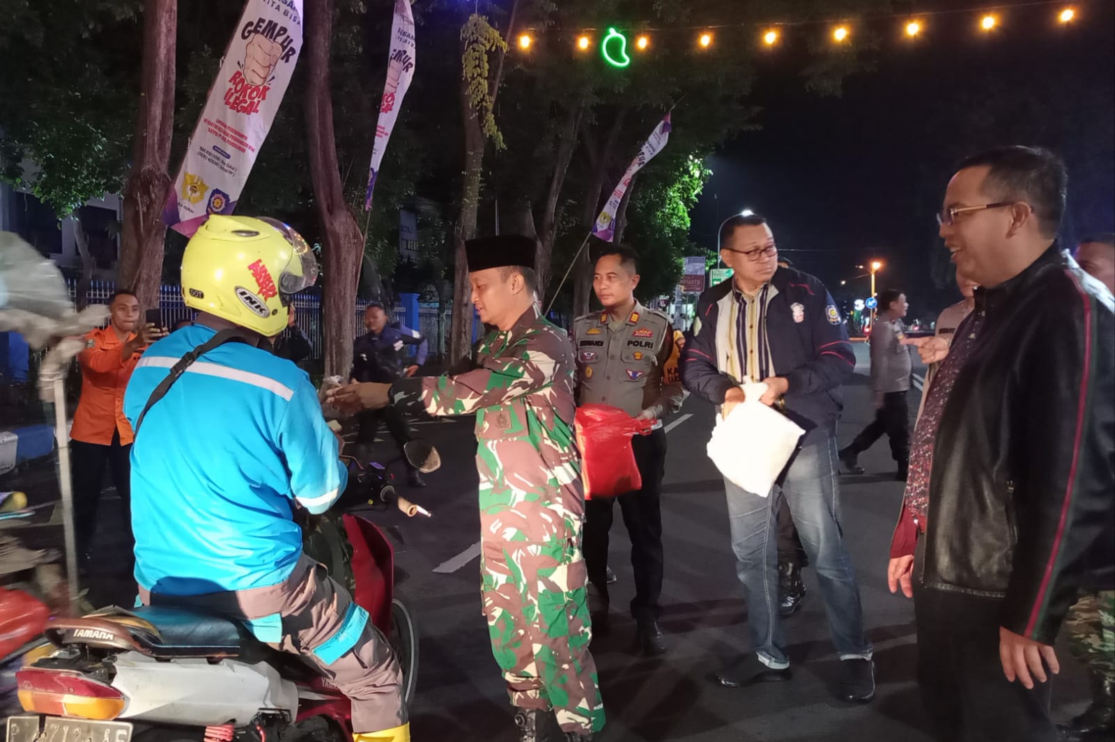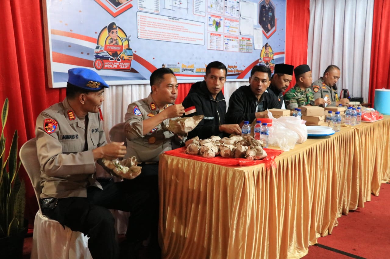 KANIGARAN – Menjelang akhir Ramadan, Wali Kota Probolinggo dr. Aminuddin, menggelar sahur bersama Kapolres Probolinggo Kota AKBP Oki Ahadian Purwono dan Dandim 0820/Probolinggo Letkol Arm Heri Budiasto, Sabtu (29/3) pagi. Acara ini berlangsung di Pos Pengamanan Idulfitri 2025 Polres Probolinggo Kota yang terletak di depan Kantor Satpol PP Kota Probolinggo. Dalam kesempatan tersebut, turut dilakukan pembagian makanan sahur kepada para pengendara yang melintas di depan pos pengamanan.