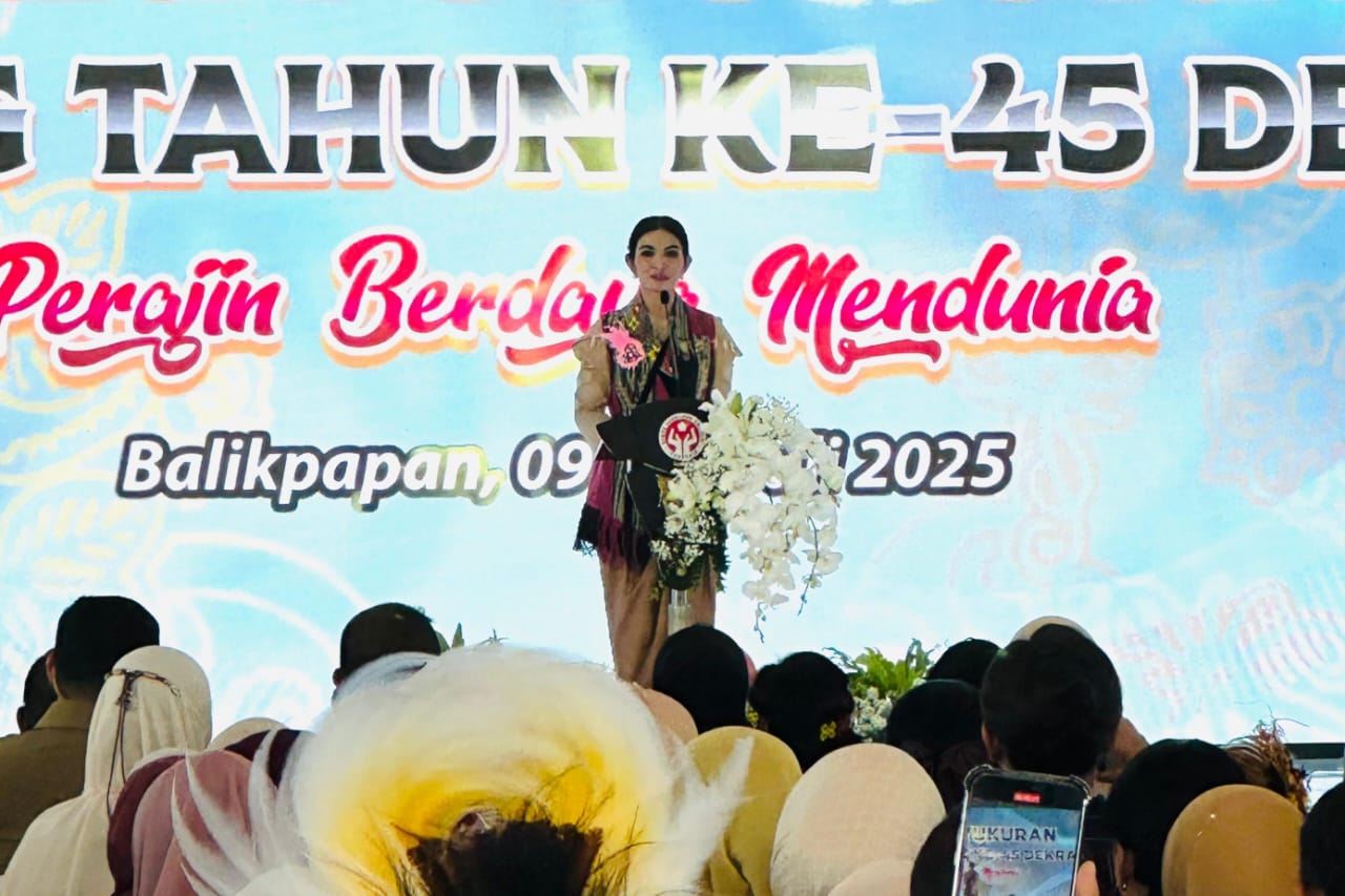Balikpapan – Ketua Dewan Kerajinan Nasional Daerah (Dekranasda) Kota Probolinggo, dr. Evariani Aminuddin menghadiri puncak peringatan Hari Ulang Tahun (HUT) ke-45 Dewan Kerajinan Nasional (Dekranas) Tahun 2025 di Balikpapan Sport and Convention Center (BSCC/DOME), Kalimantan Timur. Didampingi Kepala Dinas Koperasi, Usaha Mikro dan Perdagangan (DKUP) Fitriawati, kehadiran Evariani sekaligus membawa produk Kota Probolinggo ke panggung nasional.