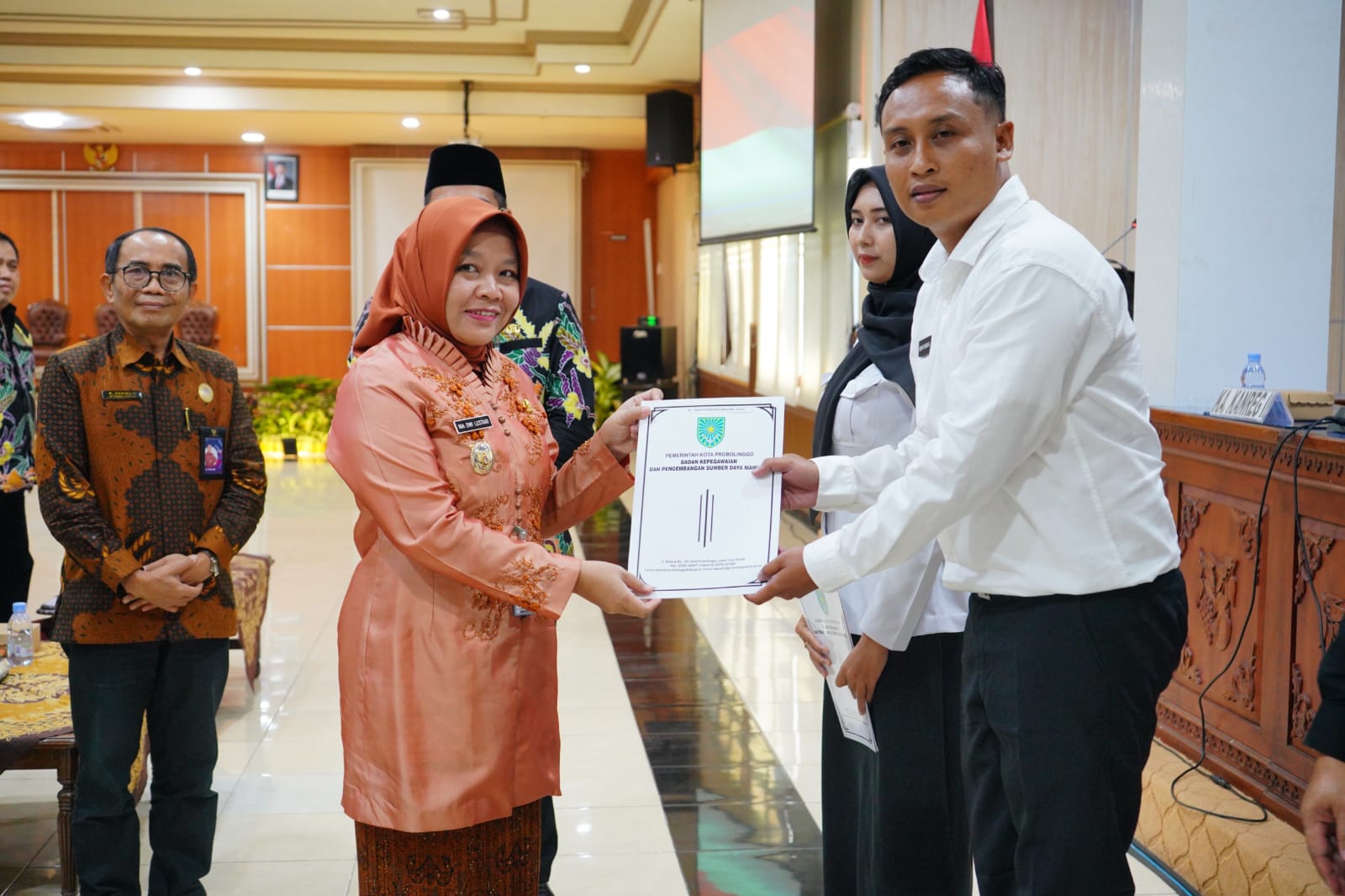 KANIGARAN – Kabar gembira bagi puluhan Pegawai Pemerintah dengan Perjanjian Kerja (PPPK) Kota Probolinggo. Kamis (24/4) sore, Wali Kota Probolinggo dr. Aminuddin menyerahkan Surat Keputusan (SK) Pengangkatan kepada 47 PPPK Tahap 1 di lingkup Pemkot Probolinggo, di Puri Manggala Bhakti Kantor Pemkot.
