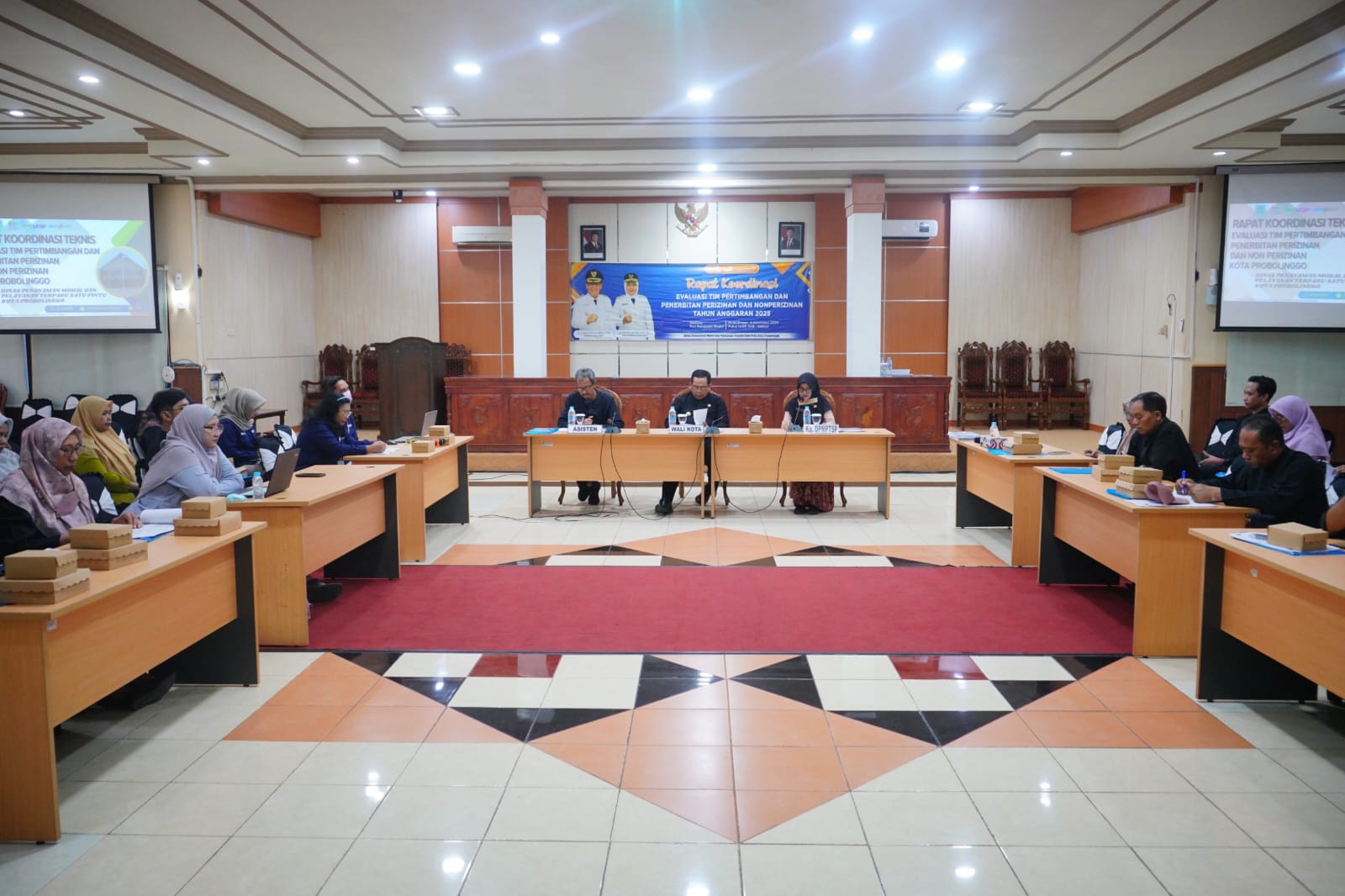 KANIGARAN - Pemerintah Kota Probolinggo melalui Dinas Penanaman Modal dan Pelayanan Terpadu Satu Pintu (DPMPTSP) Kota Probolinggo menggelar Rapat Koordinasi Teknis Evaluasi Tim Pertimbangan Dan Penertiban Perizinan dan Non Perizinan Kota Probolinggo Tahun 2025, Kamis (4/12) siang di Puri Manggala Bhakti Kantor Wali Kota Probolinggo.