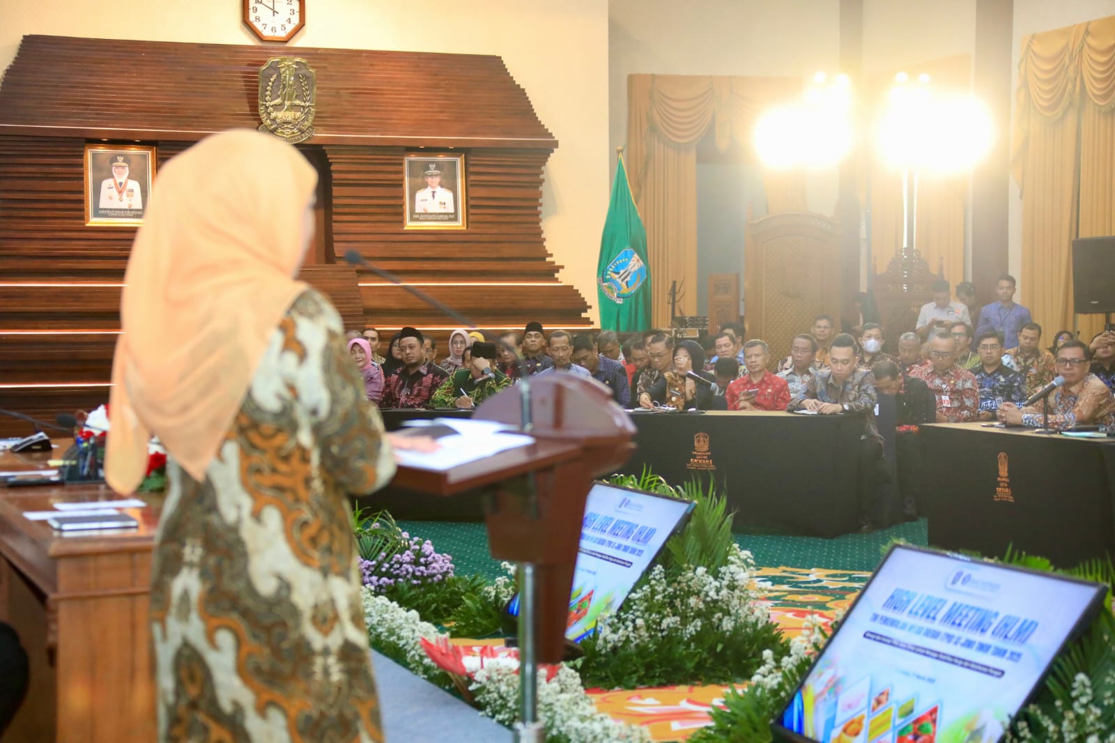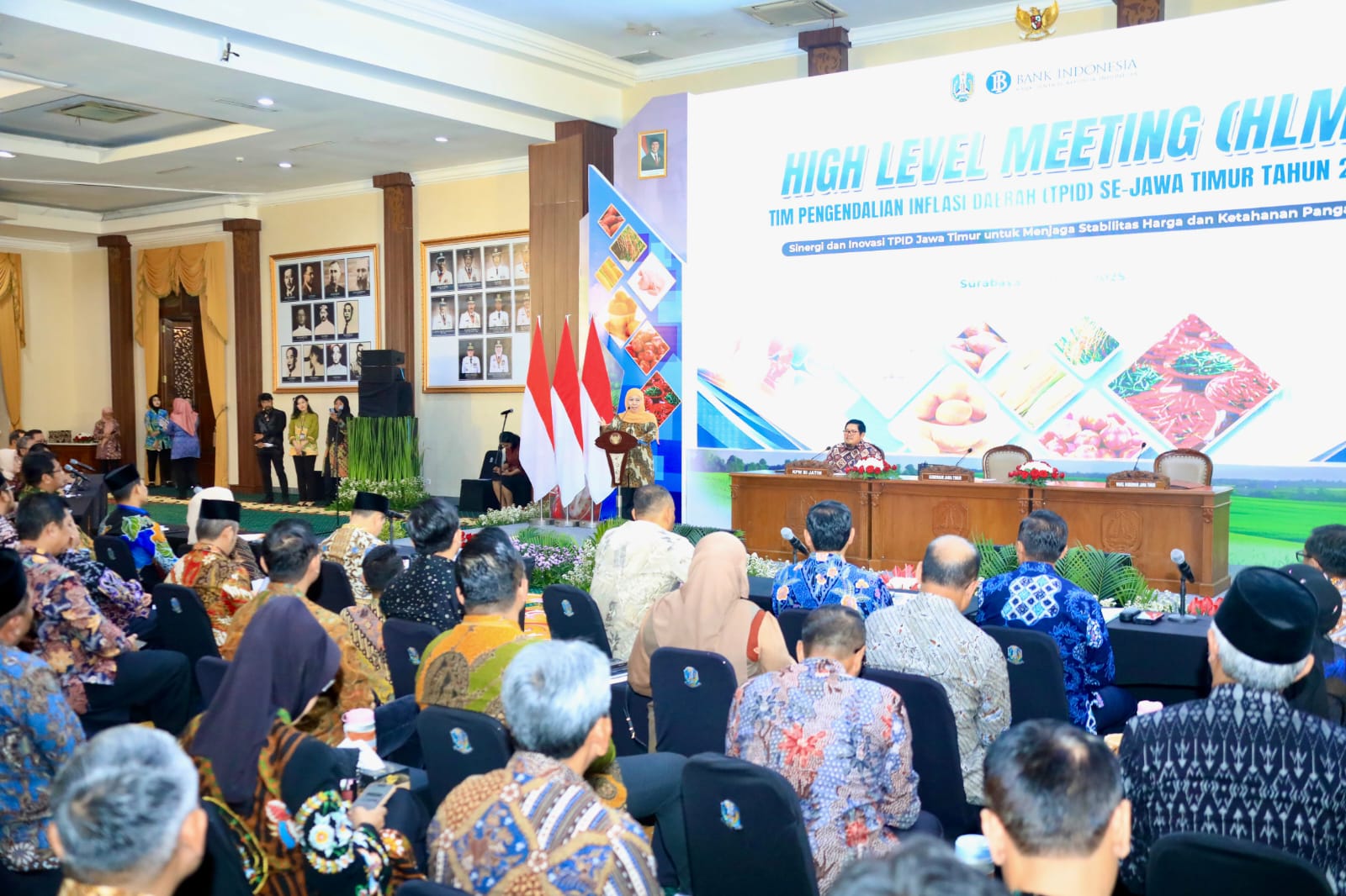 SURABAYA - Pemerintah Provinsi Jawa Timur menggelar Rapat Koordinasi (Rakor) High Level Meeting Tim Pengendalian Inflasi Daerah (HLM TPID) untuk Periode Ramadan 1446 Hijriyah dan Hari Besar Keagamaan Nasional (HBKN) Idul Fitri 2025. Acara yang berlangsung di Gedung Grahadi, Surabaya, pada Senin (17/3) ini mengusung tema "Sinergi dan Inovasi TPID Jawa Timur untuk Menjaga Stabilitas Harga dan Ketahanan Pangan."