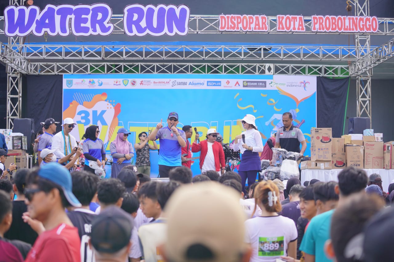 “Kami dari Dispopar mengadakan acara Water Run di Kota Probolinggo ini yang pertama kali dan syukur alhamdulillah berlangsung meriah. Banyak peserta yang ikut, hampir seribu lebih antusias masyarakat mengikuti event ini. Kami juga mendorong pihak-pihak lain juga mengagendakan acara serupa. Bahkan peserta water run kali ini juga ada yang dari Situbondo, Lumajang, dari Pasuruan juga ada. Dari berbagai komunitas juga terut ikut serta, ini para atlet dari berbagai cabor juga ikut memeriahkan water run,” ungkapnya.