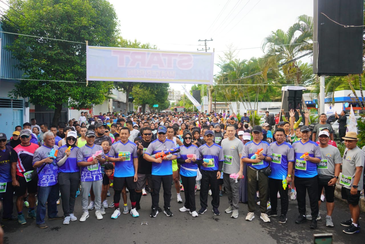 KANIGARAN - Sabtu (6/12) pagi, event Water Run 2025 sukses digelar dengan meriah oleh Pemkot Probolinggo melalui Dinas Pemuda dan Olahraga. Sekitar 1.000 peserta dari berbagai kalangan usia meramaikan satu gelaran lari itu dengan menggunakan water gun.
