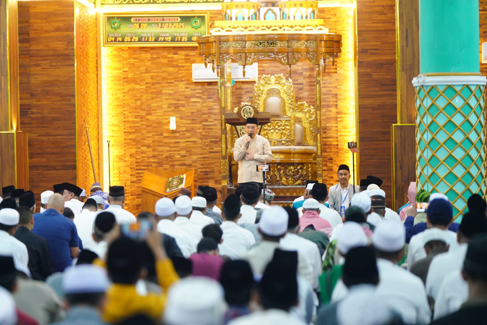 Sebelum dimulai, takmir masjid menyampaikan sejumlah zakat, infak dan shodaqoh yang diperoleh oleh masjid terbesar di kota ini. Sejumlah 2.496 paket beras 3 kg sudah disalurkan kepada masyarakat.