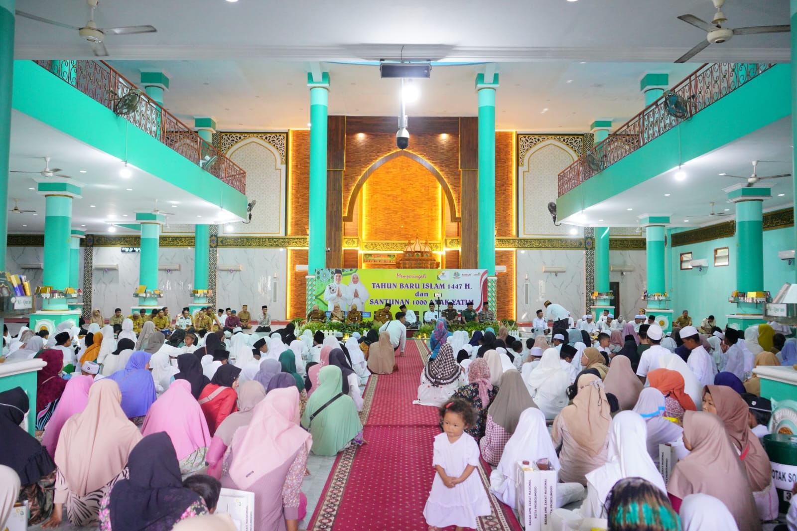 MAYANGAN - Dalam rangka menyambut Tahun Baru Islam 1447 Hijriah, Pemerintah Kota Probolinggo menyelenggarakan kegiatan santunan bagi anak yatim yang dilaksanakan di Masjid Agung Roudatul Jannah, Kecamatan Mayangan, pada Senin (30/6) pagi. Sebanyak 500 anak yatim menerima bantuan secara simbolis dalam kegiatan yang penuh makna ini.