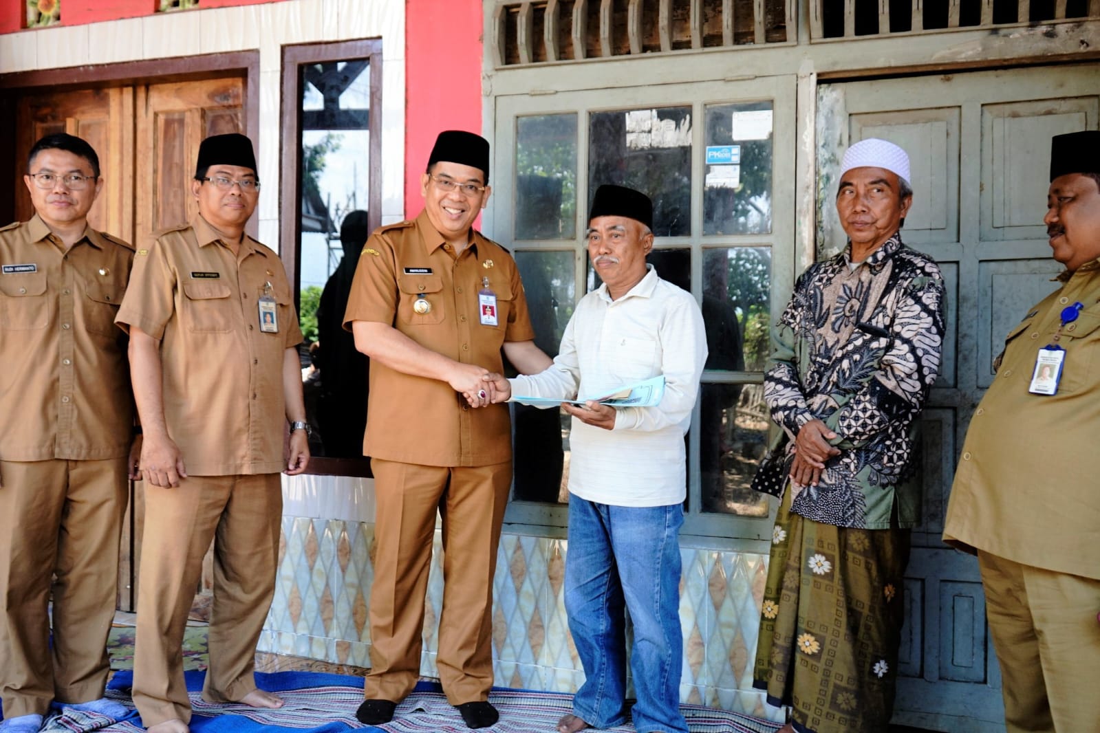 KADEMANGAN – Wali Kota Probolinggo, dr. Aminuddin, menyerahkan secara langsung santunan kematian kepada dua keluarga yang tengah berduka, Senin (15/9). Santunan masing-masing sebesar Rp. 750 ribu diberikan kepada ahli waris almarhumah Tori’a (88) di Kelurahan Triwung Kidul dan almarhum Nadji (65) di Kelurahan Pohsangit Kidul.