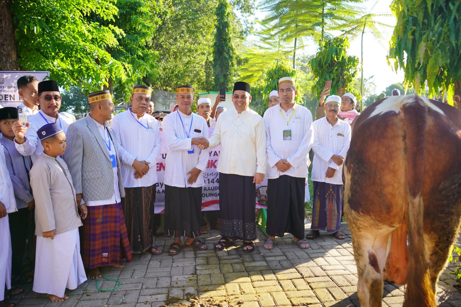 MAYANGAN - Di Hari Raya Iduladha 1446 H kali ini, Pemkot Probolinggo secara resmi menyerahkan bantuan hewan kurban dari Presiden RI Prabowo Subianto, berupa 1 ekor sapi jenis Simmental kepada Takmir Masjid Agung Raudlatul Jannah, Jum'at pagi (06/06) usai melaksanakan ibadah salat Iduladha.