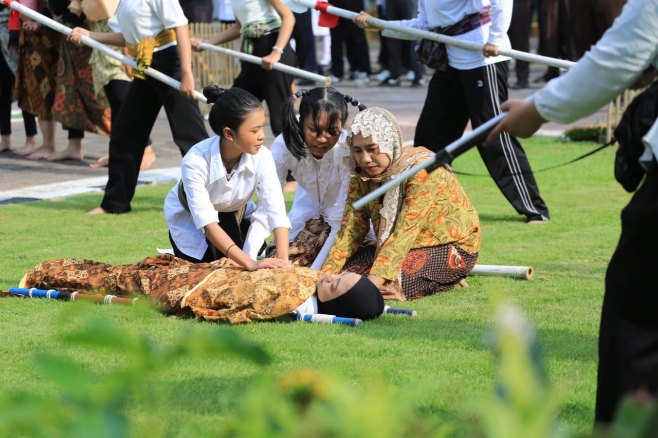 Gerak yang dinamis, narasi yang menyentuh, serta tata artistik yang apik membuat suasana pagi itu terasa haru dan penuh kebanggaan. Wali Kota Probolinggo dr. Aminuddin dan Wakil Wali Kota Probolinggo Ina Dwi Lestari, nampak antusias dan memberikan apresiasi tinggi atas penampilan tersebut.