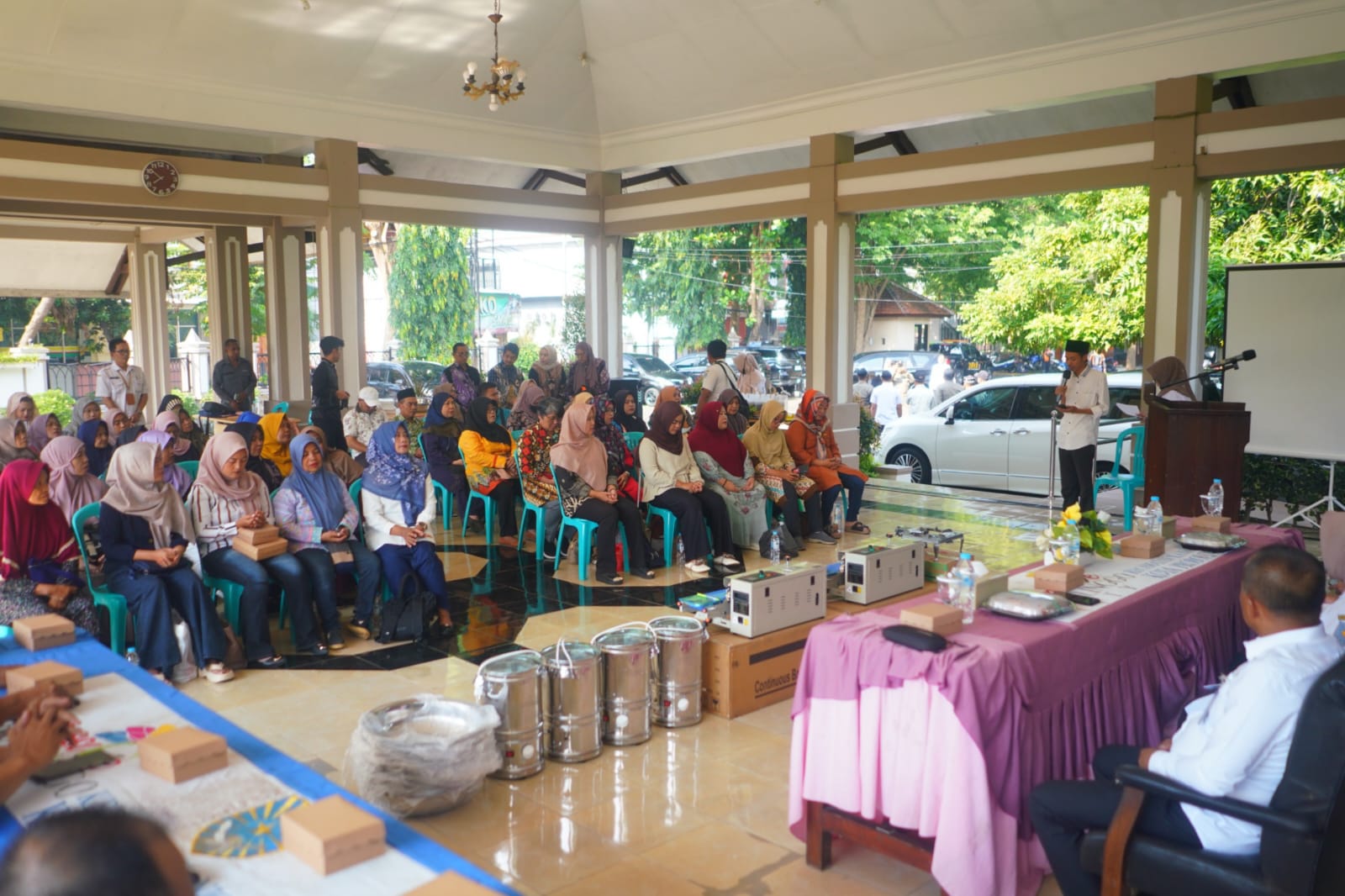 Pada kegiatan hari ini, para pelaku UMKM olahan keripik menerima paket bantuan alat produksi berupa kompor gas, continuous benchtiller, spinner dan baskom untuk mendukung peningkatan kualitas produksi.