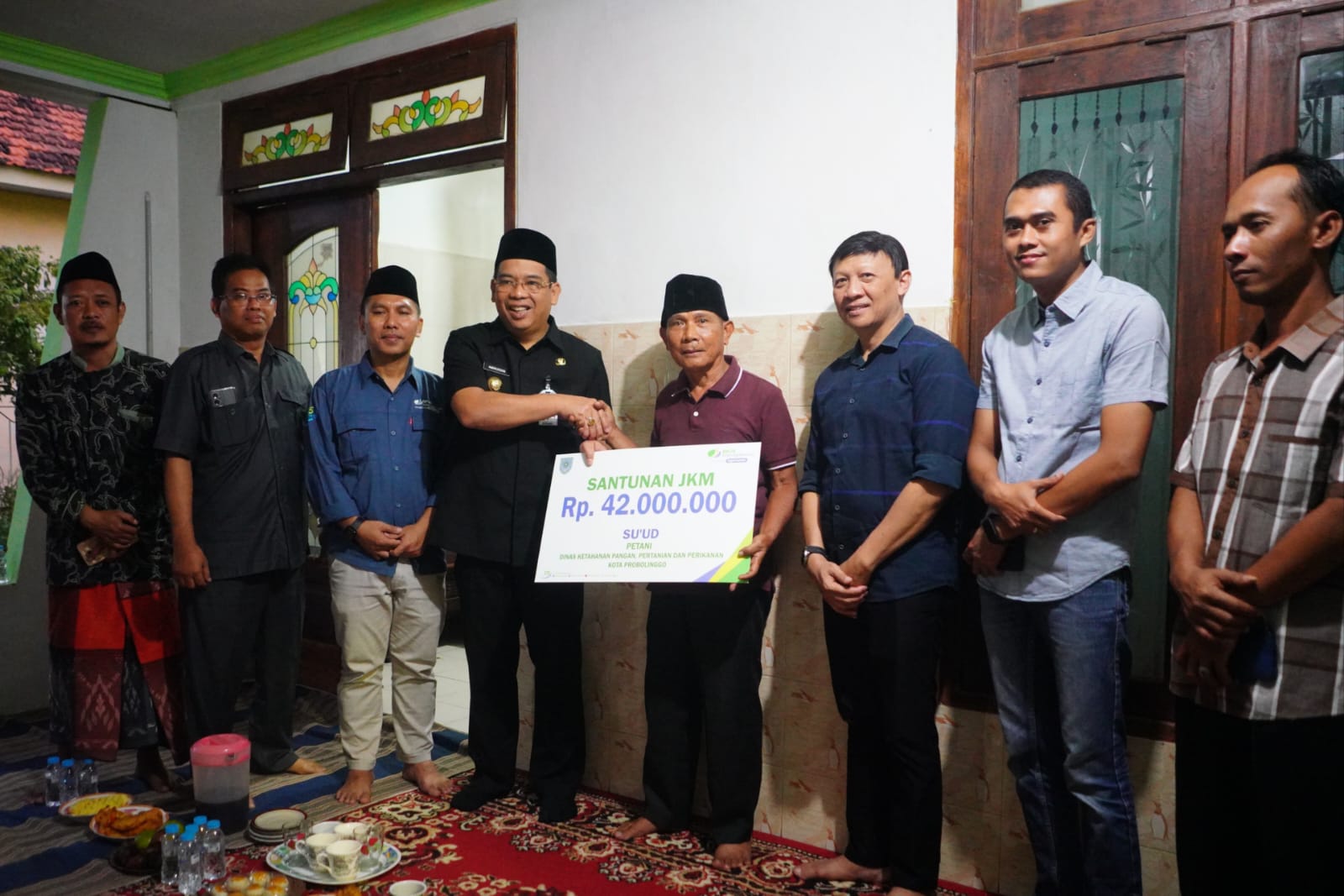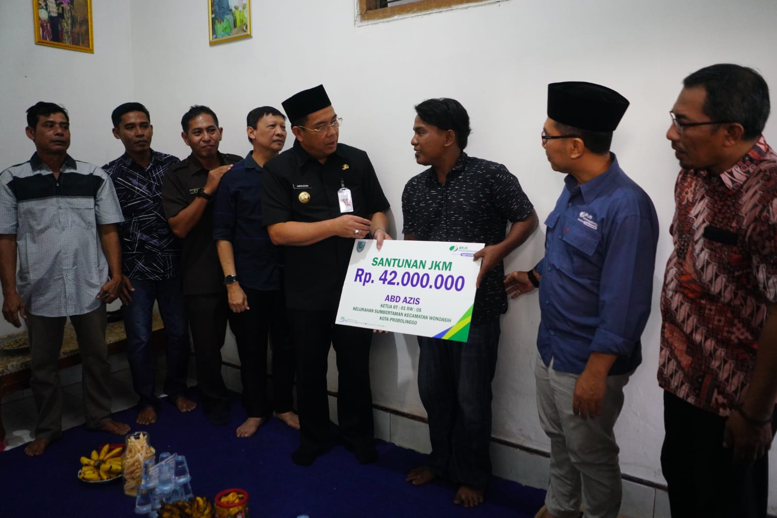 PROBOLINGGO – Pemerintah Kota Probolinggo bersama Badan Penyelenggara Jaminan Sosial (BPJS) Ketenagakerjaan menyerahkan santunan jaminan kematian (JKM) kepada para ahli waris peserta aktif BPJS di enam lokasi berbeda. Penerima santunan berasal dari berbagai kalangan, seperti petani, nelayan, Ketua RT, hingga non-ASN di lingkungan Pemerintah Kota Probolinggo, Sabtu (21/6).